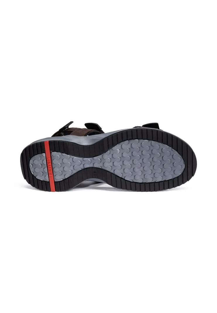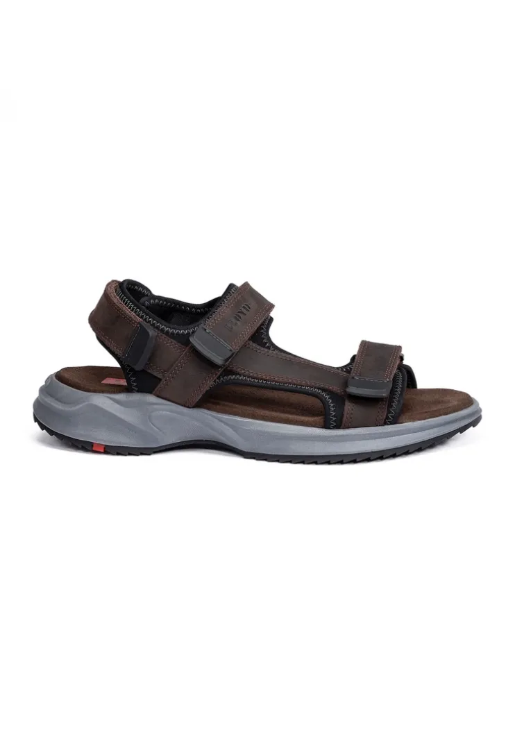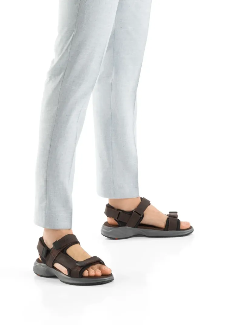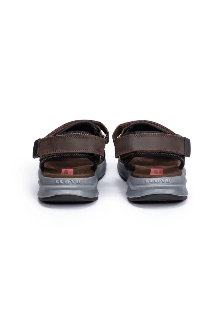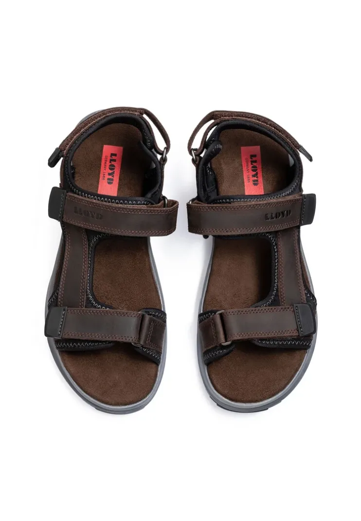 LLOYD presents the »ECHO« sandals: designed with brown smooth leather, the shoes boast a classic design. In these leather sandals, a light and breezy look on sunny days is a given. A flexible rubber sole is used. This cushions the impact when walking. Easy and quick fastening and a classic, elegant look are ensured by the soft smooth leather upper and the velcro fastener. These men’s summer shoes are breathable thanks to the synthetic lining.