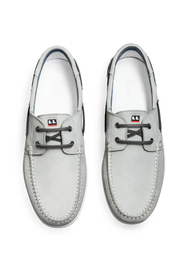 Make a statement with the LLOYD boat shoes »ELDIR« made from grey rough leather and comfortable wear. The lace-up shoes are perfect for a classic and adaptable look. A wear-resistant rubber sole cushions the impact when walking and the leather of the inner sole provides optimal heat regulation. The men’s boat shoes’ soft rough leather upper and elasticated band ensure a original and high-quality appearance and quick putting on and taking off. Thanks to the leather lining these shoes are breathable and comfortable. The model has a Variofootbed that is ideally suited for the use of inlays due to the removable insole.