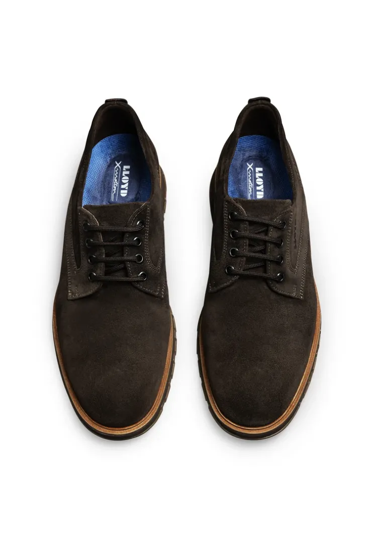 Make a statement with the LLOYD lace-up shoes made from brown rough leather and an easy-care upper material. The shoes are perfect for a secure fit through lace fastening. The flexible rubber sole cushions the impact when walking. The shoes offer secure footing and permit comfortable day-to-day wear thanks to the low block heel. The shoes’ soft rough leather upper and laces guarantee a original and high-quality appearance and a firm, secure grip. These men’s lace-up shoes are breathable and comfortable thanks to the leather lining. The model has a X-motion technology that is equipped with a running shoe technology. The sole stabilises and is gentle on the joints.