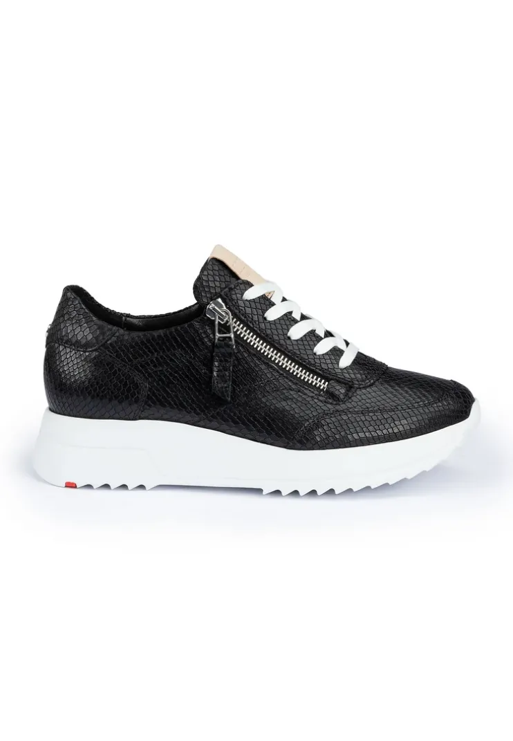 The LLOYD trainers made with black leather feature a strong and shock-absorbent sole. A casual look is guaranteed in these shoes. A non-slip rubber sole cushions the impact when walking and the leather of the inner sole offers good heat regulation. Easy fastening and an original look are guaranteed with the stylish embossed leather upper, the zip fastening. These leather and textile lined shoes are comfortable and breathable. The model features an Extralight® sole which is particularly lightweight and flexible as well as non-slip and shock-absorbent.