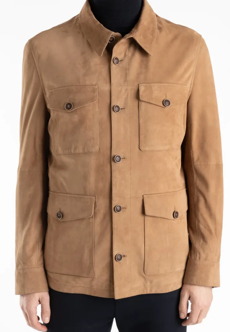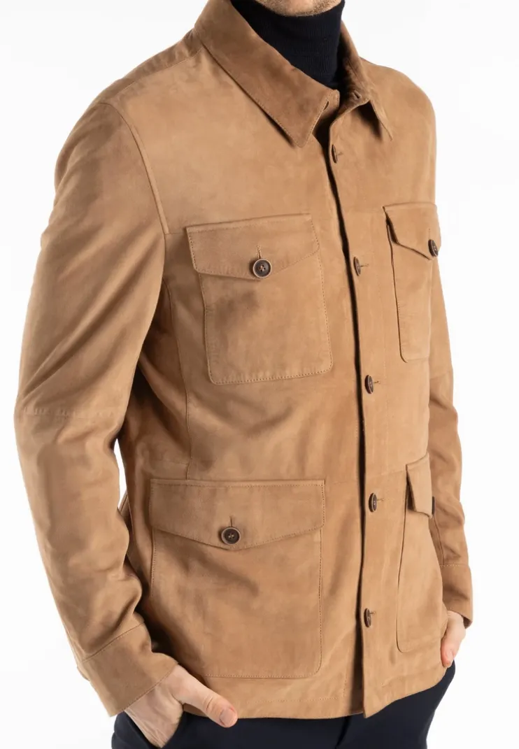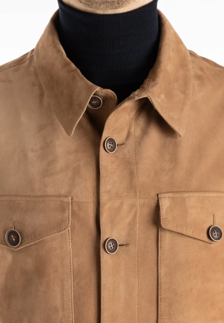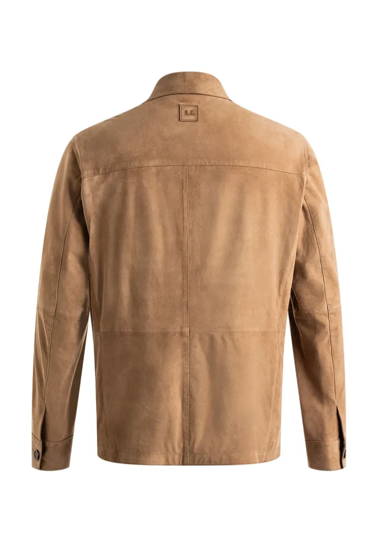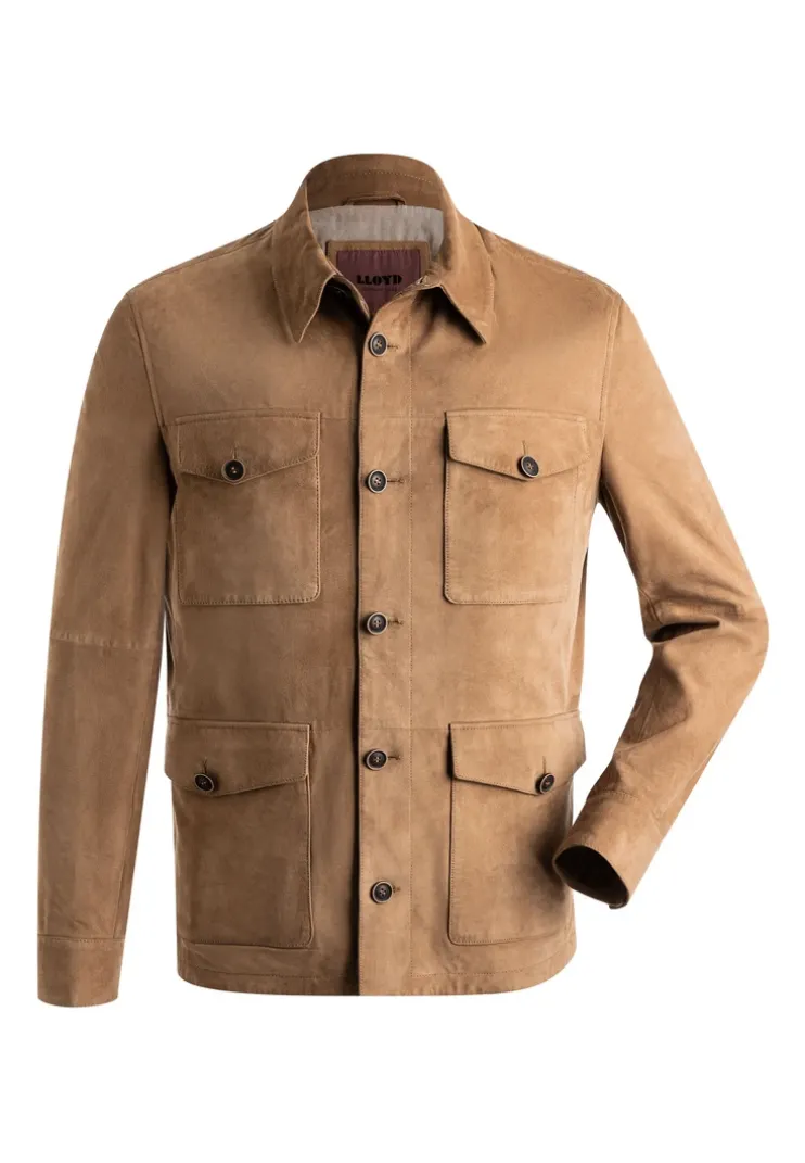 The “ADAMO” jacket from LLOYD is a straight-cut goatskin suede jacket with a turned-down collar and a button placket with high-quality buttons in a genuine horn look. It has 2 breast pockets, which can be fastened with buttons, and 2 flap pockets, which can also be fastened with buttons. There is a zip pocket and a slit pocket on the inside. The cuffs are fastened with a button.