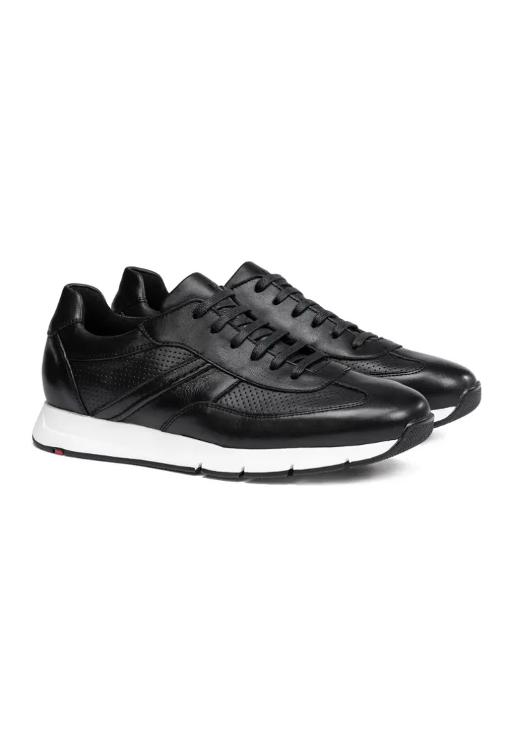 Stand out with the LLOYD trainers »ADLAY« made from black smooth leather and a sporty design. A sporty look for everyday life is guaranteed in these shoes. A wear-resistant rubber sole cushions the impact when walking and the synthetic of the inner sole contributes to lightness in wear. The laces and the stylish leather upper ensure a modern, high-quality appearance and a firm, secure grip. By use of the leather and textile lining these shoes are comfortable and breathable. The model has a Variofootbed so it is optimally suited for the use of inlays due to the removable insole.