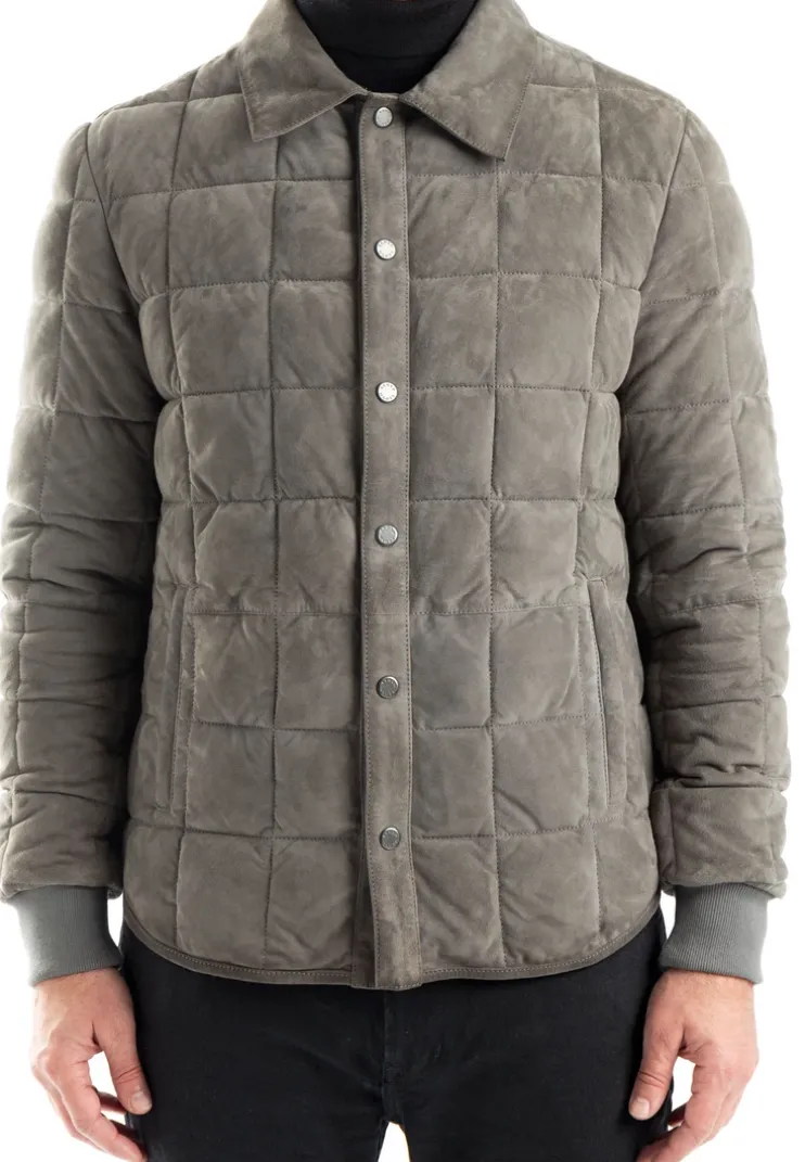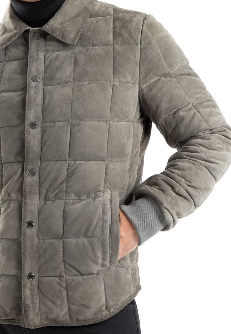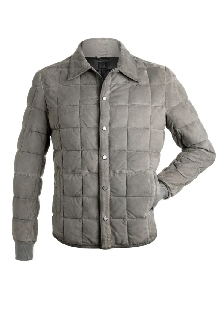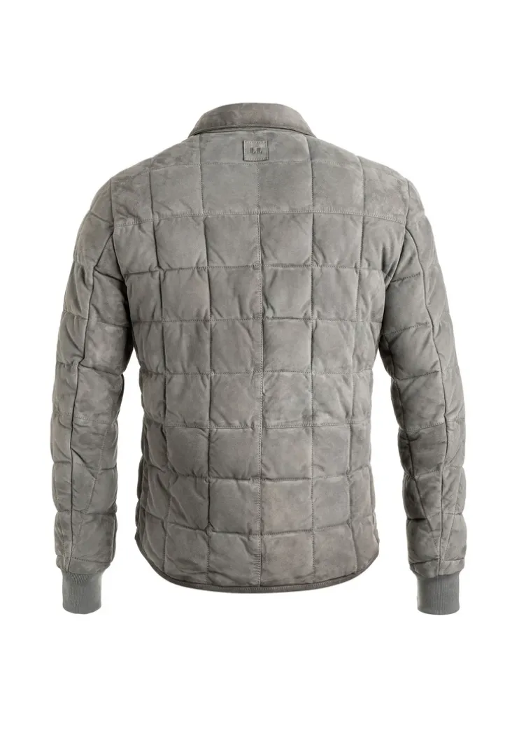 Discover the quilted jacket made from soft goat suede by LLOYD. This comfortably cut jacket features a lapel collar and a 6-button placket with high-quality metal buttons. Light padding provides additional comfort and warmth. Angled welt pockets and an interior zippered pocket offer practical storage. Elastic ribbed knit cuffs on the sleeves with wind-stopping function complete the design. The model is 1.87 metres tall and wears a size 50.n