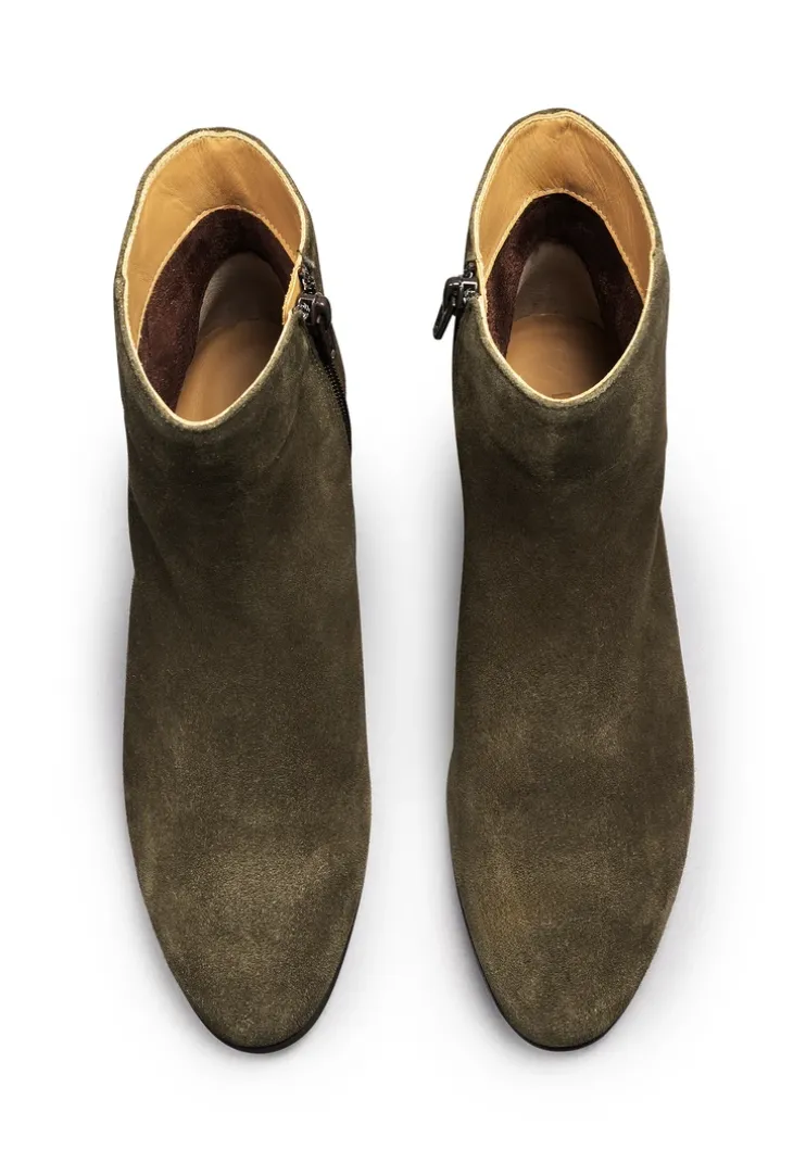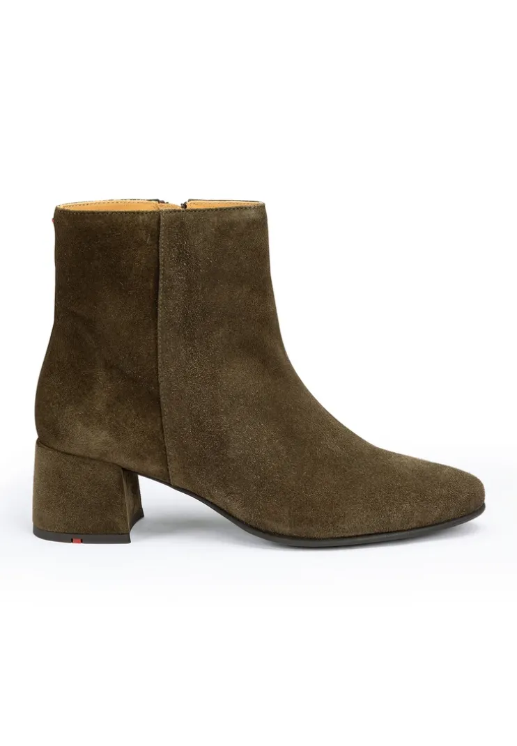 LLOYD presents the boots: designed with green rough leather, the shoes boast a pleasant wearing comfort. The shoes are perfect for a variety of outfit combinations. A wear-resistant rubber sole cushions the impact when walking and the leather of the inner sole provides optimal heat regulation. The extravagant, pointed toe creates an on-trend shape to the feet. Through the low block heel the shoes offer secure footing and permit comfortable daily wear. The shoes’ soft rough leather upper and zip fastening ensure a original and high-quality look and quick fastening. These textile lined shoes are cozy and comfortable.