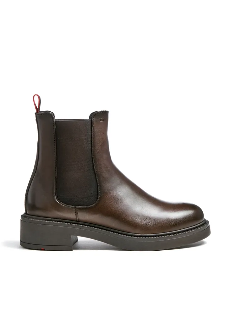 The LLOYD boots designed with brown smooth leather feature a sporty design. A range of outfit combinations as well as easy sliding-into is guaranteed in these shoes. The wear-resistant rubber sole cushions the impact when walking and the leather of the inner sole contributes to good heat regulation. The shoes offer secure footing and allow comfortable day-to-day wear by the low block heel. The elasticated band as well as the soft smooth leather upper guarantee a classic, elegant look and quick putting on and taking off. These shoes are cozy and comfortable by use of the textile lining.