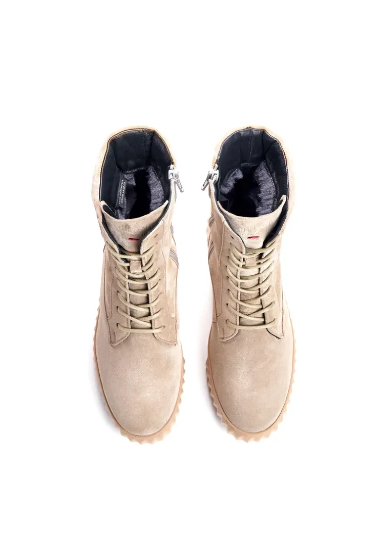 LLOYD presents the boots: crafted from beige rough leather, the shoes boast a strong and shock-absorbent sole. In these ankle boots, a variety of outfit combinations is a given. A flexible rubber sole is utilized. This cushions the impact when walking. The shoes are comfortable and therefore ideal companions for everyday life by the low heel. Easy fastening as well as a original and high-quality appearance are ensured by the soft rough leather upper, the zip fastening. These shoes, these shoes are warm, regulate the temperature by use of the lambskin fur lining.