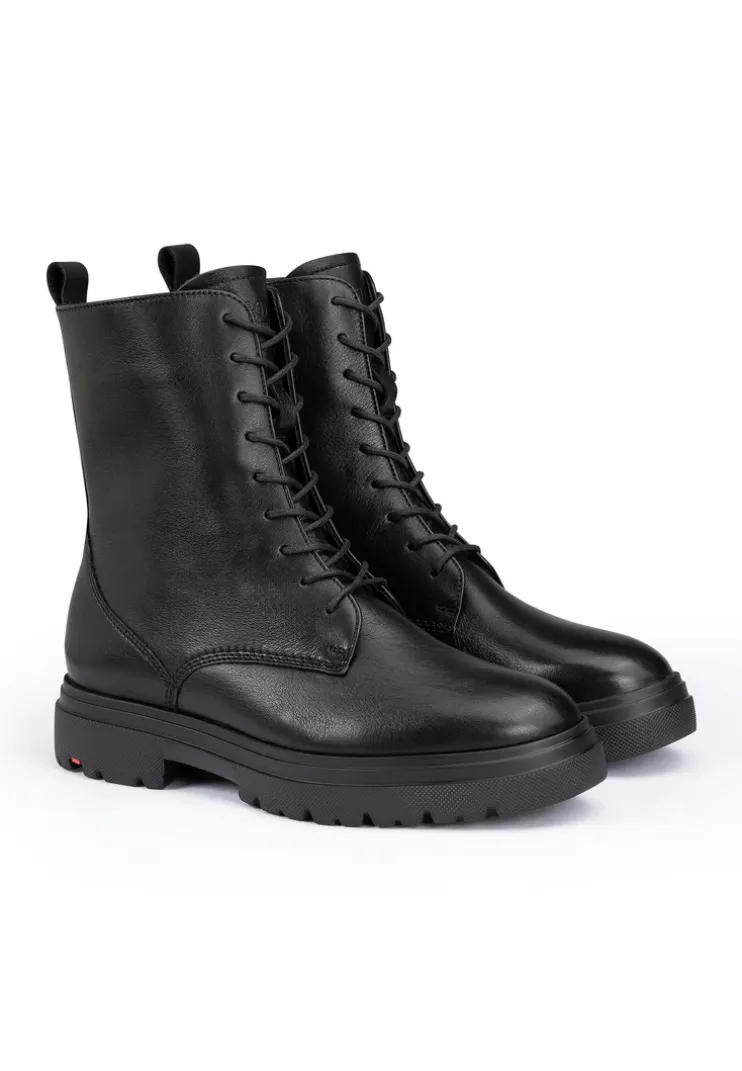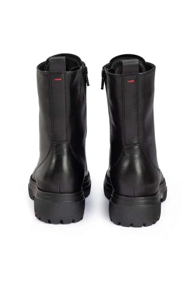 The LLOYD boots made with black smooth leather feature a strong and shock-absorbent sole. The shoes are ideal for a variety of outfit combinations. Their flexible rubber sole cushions the impact when walking perfectly. Additionally, the wool lining of the inner sole provides a warm interior. The shoes offer secure footing and permit comfortable day-to-day wear thanks to the low block heel. The shoes’ soft smooth leather upper, zip fastening guarantee a classic, elegant appearance and easy fastening. Even when it’s cold These shoes are insulated and warm as well as snug by use of the wool lining.