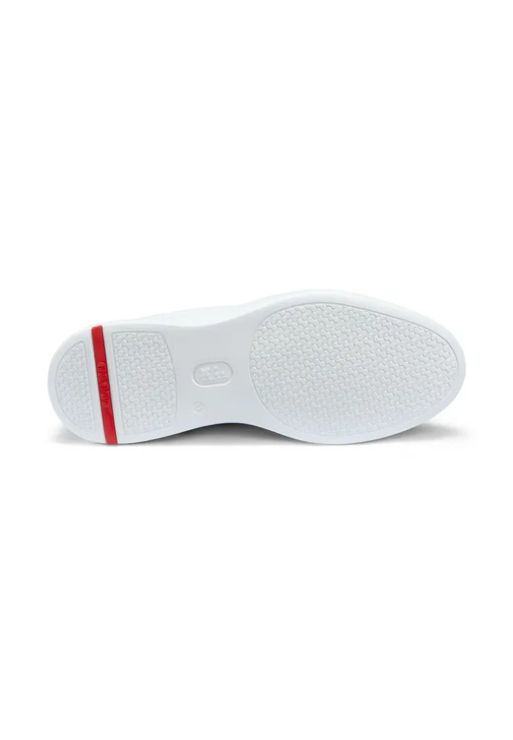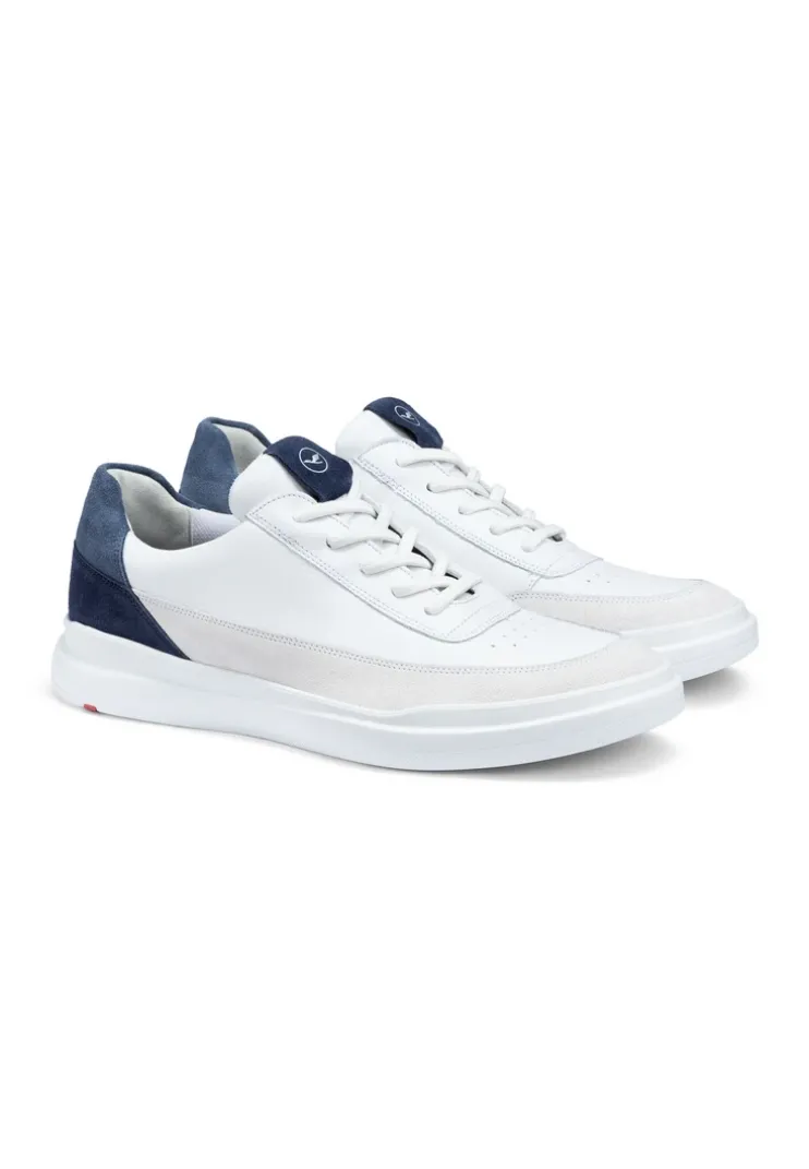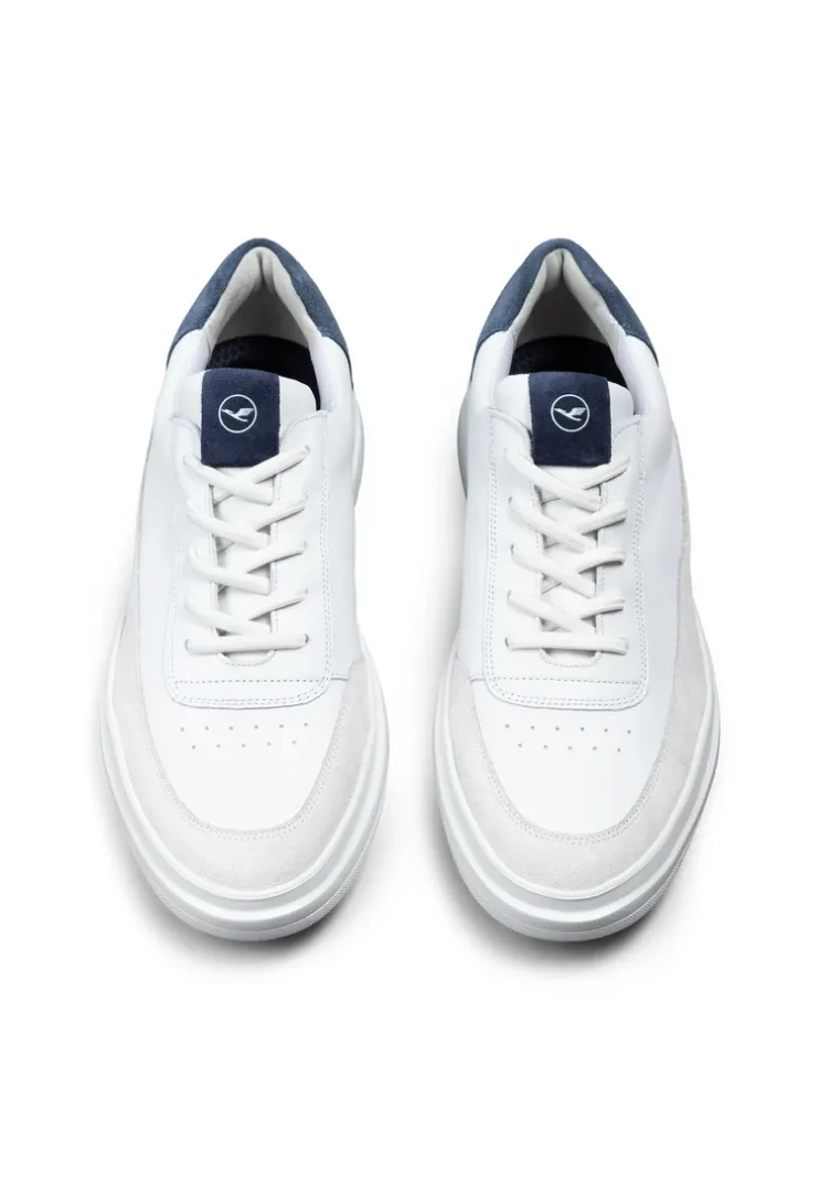 The traveling shoes from the LLOYD X Lufthansa collection are light as a feather, comfortable to wear and quick to put on and take off. Practical for security checks: they contain no metal. They look great on top, inspired by the airplanes in the Lufthansa fleet. No wonder everyone flies in them.nCatch the eye with the LLOYD trainers made from white smooth leather and an extremely light and shock-absorbent sole. In these shoes, a casual look is a given. A non-slip rubber sole is used. This cushions the impact when walking while the synthetic of the inner sole offers lightness in wear. The shoes’ stylish leather upper and laces guarantee a modern, high-quality appearance and a firm, secure grip. These leather and textile lined shoes are comfortable and breathable. With the Extralight® sole, the model is particularly lightweight and adaptable along with non-slip and shock-absorbent.