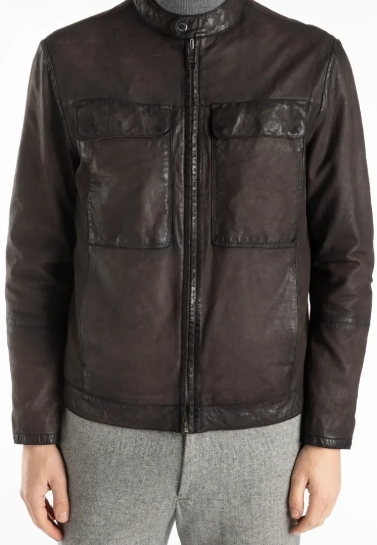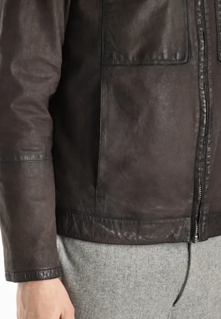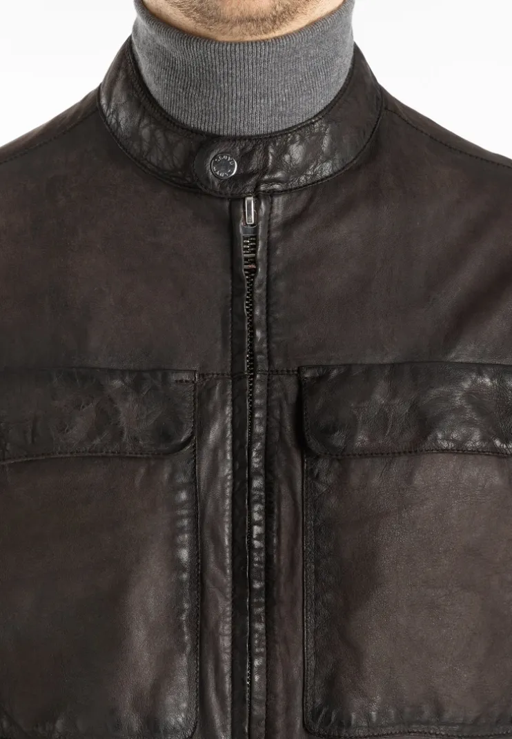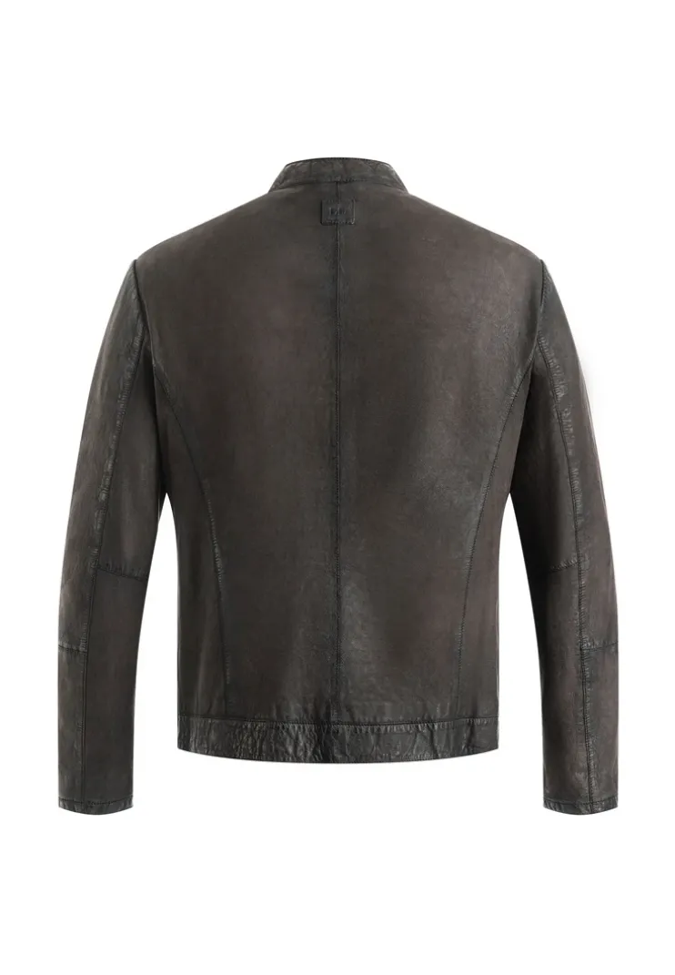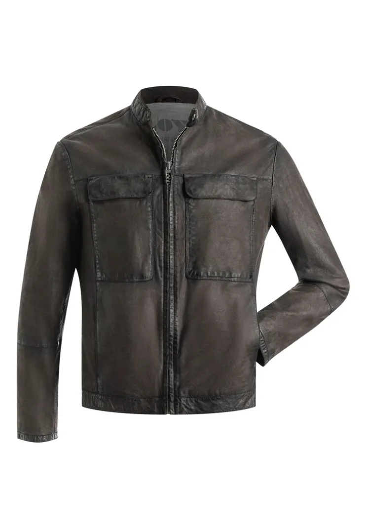 The “BALDO” jacket from LLOYD is a slightly tailored leather jacket made from lamb leather with a 2-tone look. It has a stand-up collar with press stud tabs, two breast pockets with flaps that can be fastened with press studs and two slit pockets. There is a zip pocket and two slit pockets on the inside.