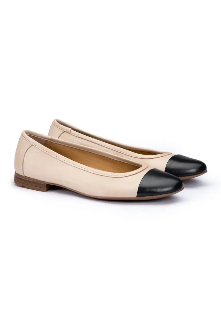 The LLOYD ballerinas for women combine elegance with maximum comfort. Made from high-quality smooth leather and equipped with a robust rubber sole, they offer both stability and flexibility. The comfortable leather lining ensures a pleasant foot climate, while the round toe creates a feminine silhouette. The ballerinas are ideal for festive occasions and impress with their simple beige color. Thanks to the practical slip-on fastening, they are easy to put on and take off. Make a fashion statement with these stylish and timeless ballerinas.
