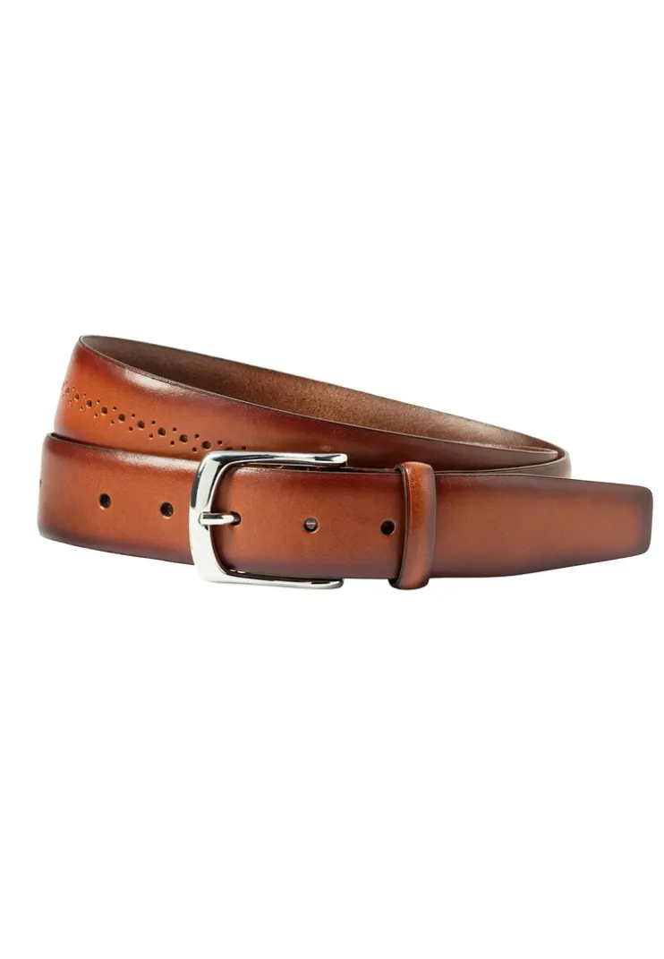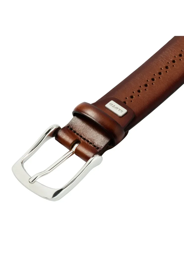 Stylish leather belt: special details are the fashionable Lyra perforation and the noble edge finish.