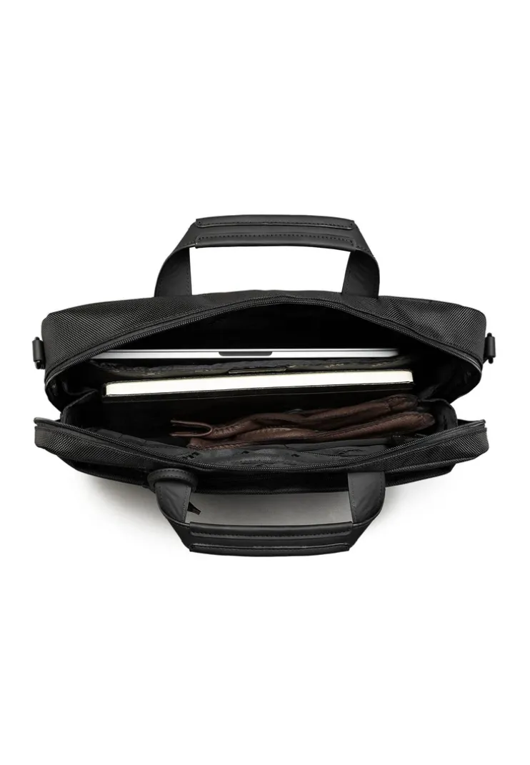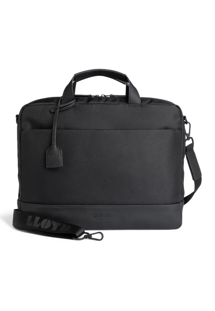 The LLOYD business bag, made from durable nylon fabric, stands out with its functional and elegant design. With dimensions of 38 x 29 x 8 cm, it offers ample space for all essential items. The bottom of the bag is crafted from a special Rains material, providing extra durability and protection.nThanks to the short handle and the detachable, adjustable shoulder strap, the bag is easy to carry. On the back, there is a vertical and a horizontal zippered pocket, which, combined with a trolley handle, ensure maximum flexibility on the go.nThe front of the business bag features a large zippered pocket for quick access to frequently needed items. The main compartment is equipped with a two-way zipper and includes a laptop compartment, four slip pockets, two pen holders, and an additional zippered pocket inside. This ensures all your important documents and work materials are always well-organized and within reach.