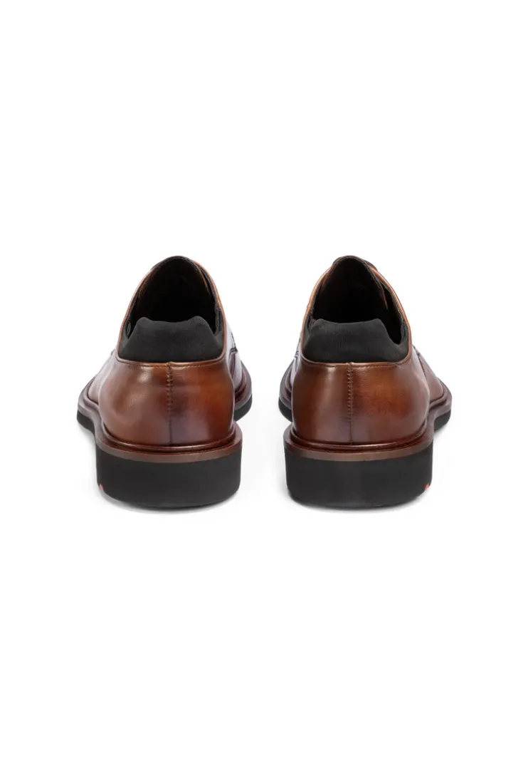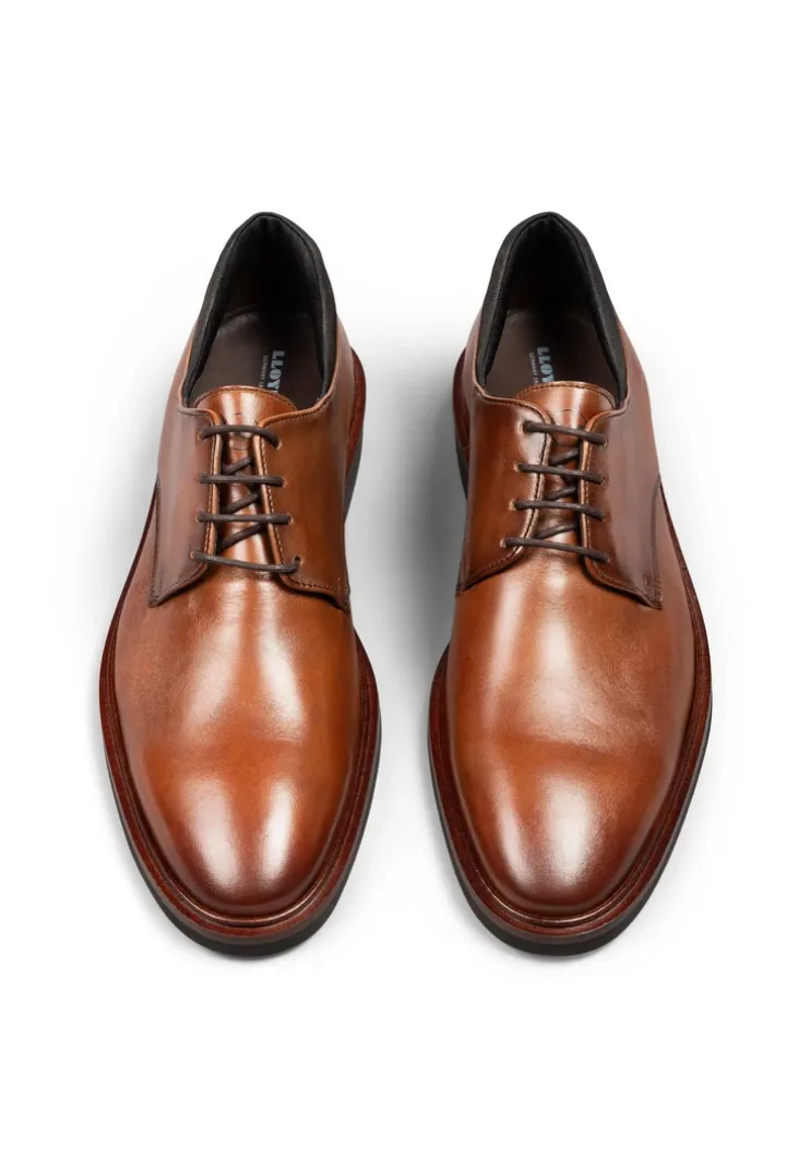 The traveling shoes from the LLOYD X Lufthansa collection are light as a feather, comfortable to wear and quick to put on and take off. They look great on top, inspired by the airplanes in the Lufthansa fleet. No wonder everyone flies in them.nLLOYD presents the lace-up shoes: made with brown smooth leather, the shoes boast an extremely light and shock-absorbent sole. The men’s lace-up shoes persuade with a secure fit through lace fastening. Their flexible rubber sole cushions the impact when walking perfectly. On top of that, the leather of the inner sole ensures optimal heat regulation. The shoes offer secure footing and allow comfortable day-to-day wear thanks to the low block heel. The laces and the soft smooth leather upper ensure a classic, elegant look and a firm, secure grip. These shoes are comfortable and breathable by use of the leather and textile lining. The model has an Extralight® sole which means it is especially lightweight and adaptable along with non-slip and shock-absorbent.