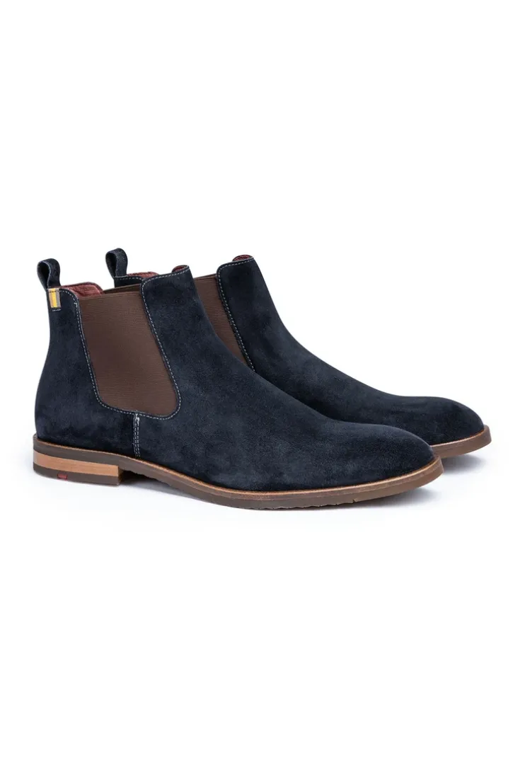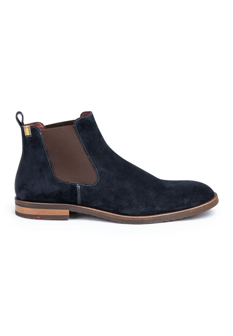 The LLOYD boots made with blue rough leather feature a pleasant wearing comfort. The shoes are perfect for a casual look for daily life. The flexible rubber sole cushions the impact when walking and the leather of the inner sole provides optimal heat regulation. Thanks to the low block heel the shoes offer secure footing and allow comfortable everyday wear. Easy putting on and taking off and a original and high-quality look are ensured by the soft rough leather upper and the elasticated band. These shoes are comfortable and breathable by use of the leather and textile lining.