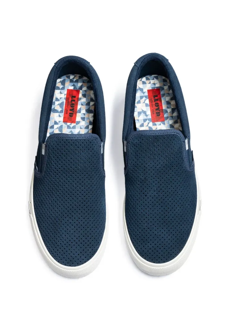 LLOYD presents the »EDO« slip-ons: made with blue rough leather, the shoes boast a pleasant wearing comfort. Effortless handling by simply slipping into them is guaranteed in these slip-ons. Their wear-resistant rubber sole cushions the impact when walking perfectly.. The men’s shoes’ stylish leather upper and elasticated band guarantee a modern, high-quality appearance and easy putting on and taking off. Thanks to the microfiber lining these shoes are breathable. The model has a Variofootbed so it is ideally suited for inlays due to the removable insole.