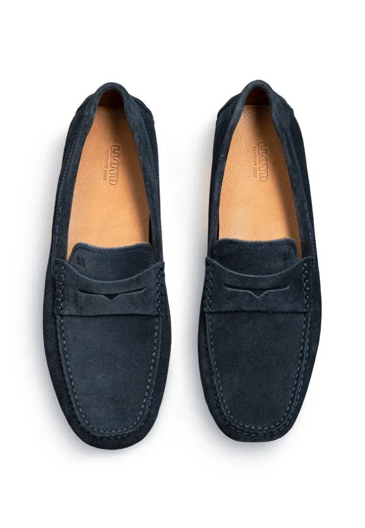 The LLOYD men’s “ELJOS” moccasins made from blue suede are extremely comfortable to wear. These moccasins offer a classic, versatile look. The elastic rubber sole provides ideal cushioning when walking. In addition, the leather sole on the inside provides a high level of comfort. With their soft, roughened leather, these men’s moccasins create an original, high-quality look and are easy to put on and take off. The men’s loafers are breathable and comfortable thanks to the leather lining. The model is ideal for insoles thanks to the Variofootbed and removable footbed.