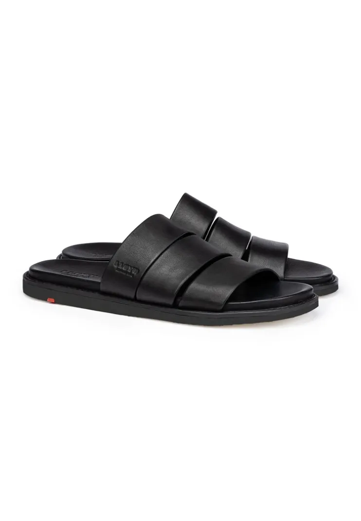 Stand out with the LLOYD sandals »EMINO« made from black smooth leather and a fashionable design. A light and breezy look on sunny days is guaranteed in these shoes. Their non-slip rubber sole cushions the impact when walking perfectly. On top of that, the leather of the inner sole provides good heat regulation. The elasticated band and the soft smooth leather upper guarantee a classic, elegant appearance and easy putting on and taking off. By use of the leather lining these shoes are breathable and comfortable.