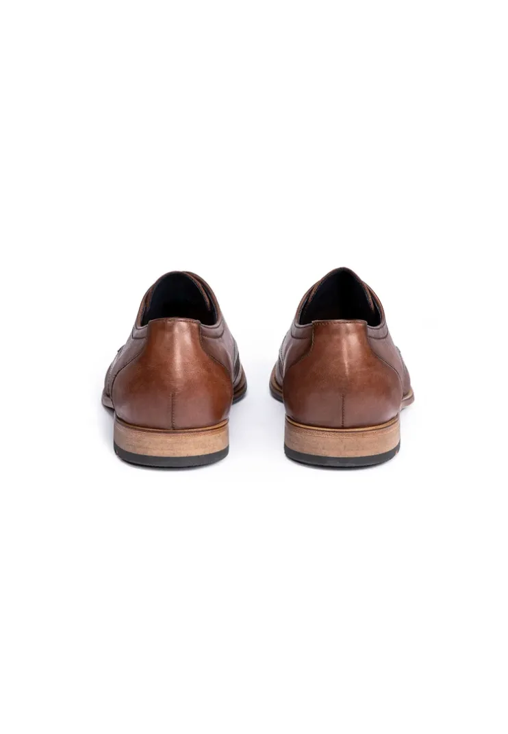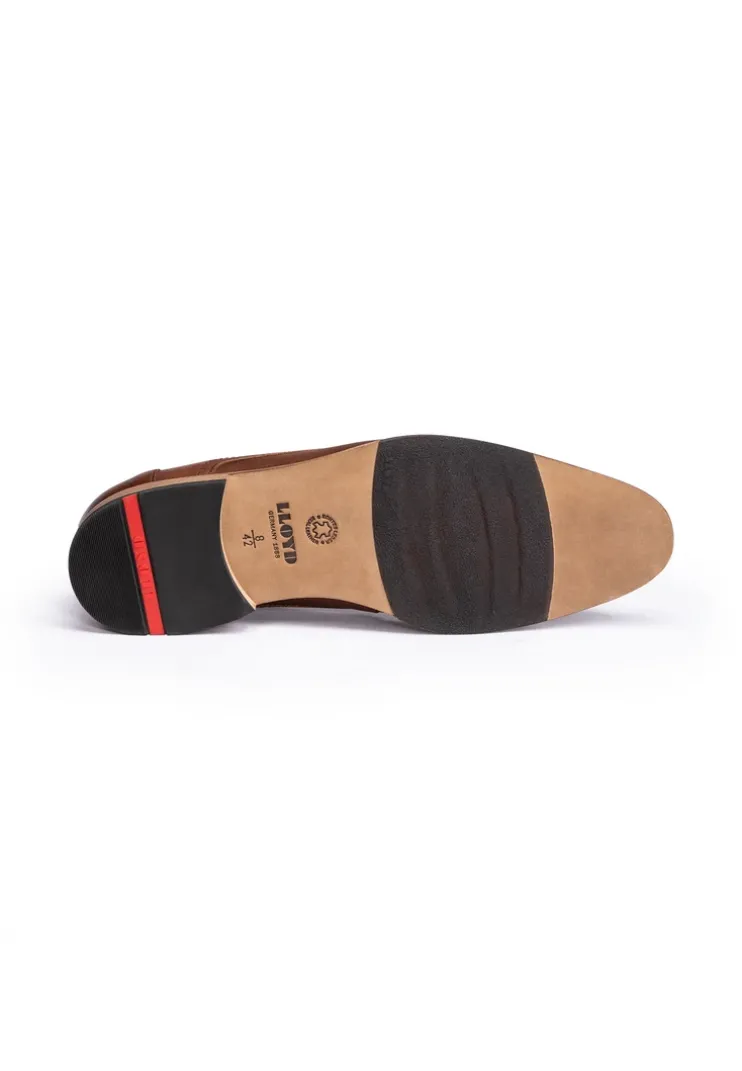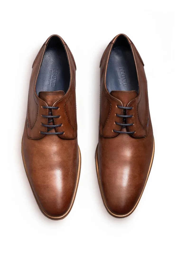 Stand out with the LLOYD derby shoes »GABRIEL« made from brown smooth leather and a classic design. The men’s shoes are ideal for a timeless and elegant look. A wear-resistant leather and rubber sole cushions the impact when walking and guarantees comfortable long wear and the leather of the inner sole contributes to optimal heat regulation. The almond toe makes for an classic fit and creates the appearance of slim feet. The shoes’ soft smooth leather upper and laces guarantee a classic, elegant look and a firm, secure grip. By use of the leather and textile lining these men’s shoes, men’s lace-up shoes are comfortable and breathable.