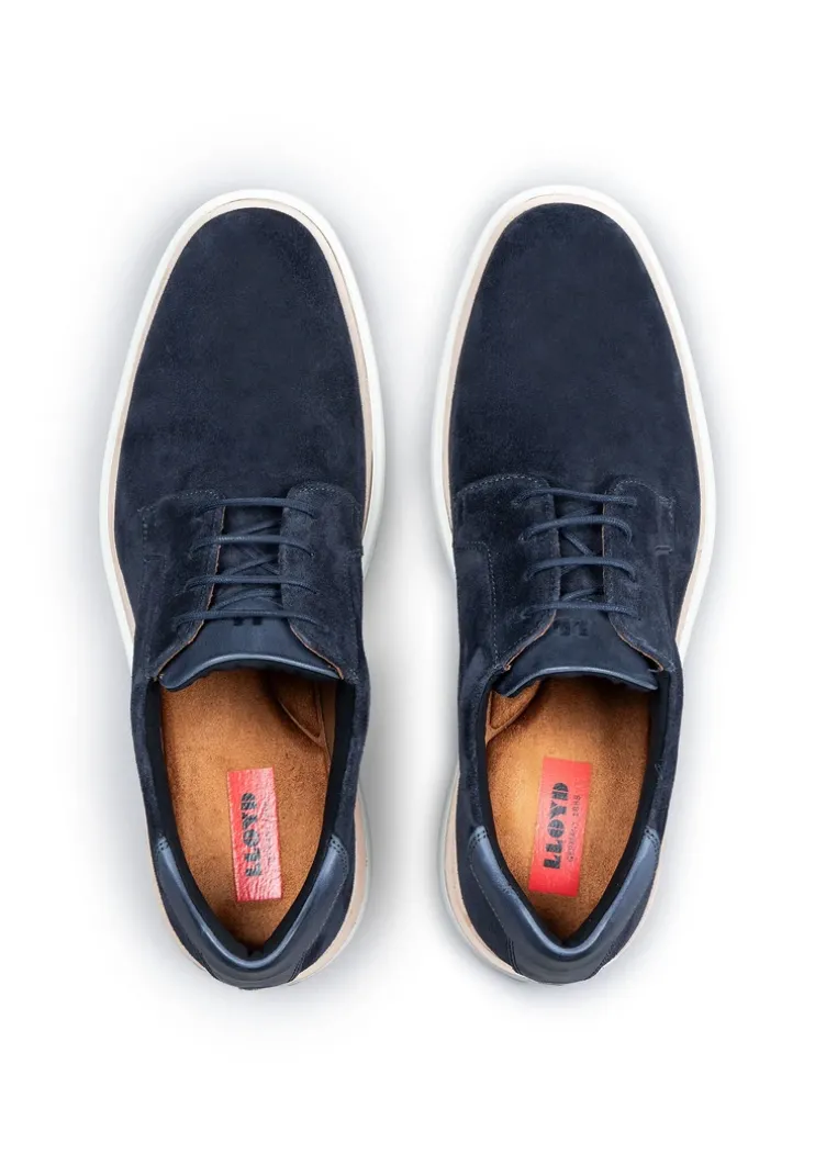 The LLOYD GOODMAN is a stylish derby lace-up shoe for men that impresses with its attractive suede and smooth leather upper. The practical lacing allows individual adjustment for optimum comfort. With an elegant blue color, this shoe blends harmoniously into a variety of leisure outfits. The lining consists of an appealing combination of 60% leather and 40% textile and ensures a comfortable feel. The removable insole is made of high-quality microfibre and allows for a personalized fit. Thanks to the rubber sole, the GOODMAN not only offers a modern design, but also the necessary durability for everyday use. Discover the perfect balance between style and functionality for every occasion with this model.