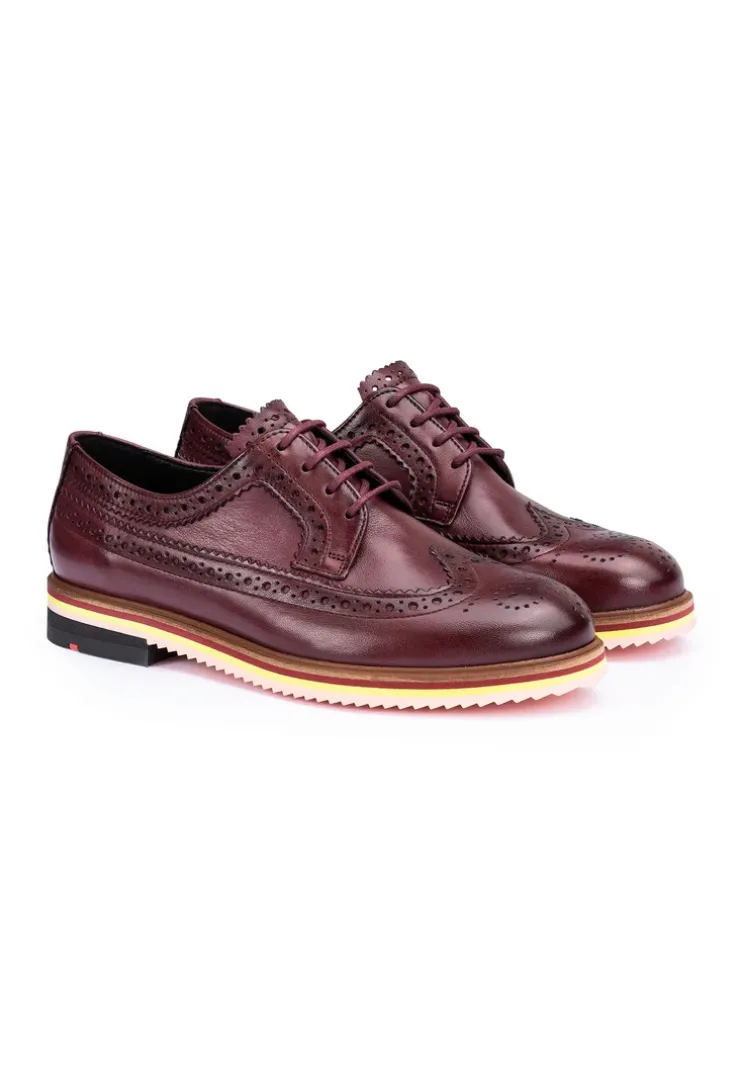 The LLOYD lace-up shoes made from smooth red leather impress with their classic design. The lace-up shoes promise a classic, elegant appearance. The elastic rubber sole provides ideal cushioning when walking. The leather insole ensures a high level of comfort. With the flat block heel, the lace-up shoes offer a secure stance and are particularly suitable for everyday wear. With their soft, smooth leather, the lace-up shoes create an elegant look and, in combination with the fastening, provide a firm, secure hold. The leather and textile lining makes the lace-up shoes comfortable and breathable.
