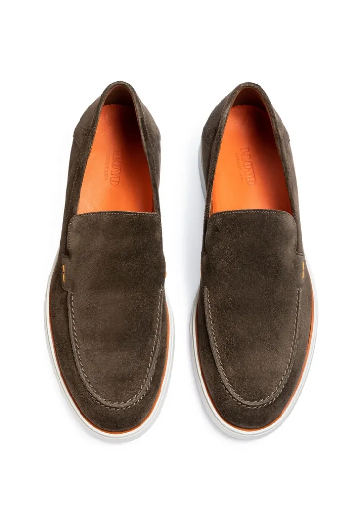LLOYD presents the »HUNTER« slip-ons: crafted from brown rough leather, the shoes boast an easy-to-clean upper material. In these shoes, easy handling by simply slipping into them is a given. Their flexible rubber sole cushions the impact when walking perfectly. On top of that, the leather of the inner sole provides good heat regulation. The elasticated band and the soft rough leather upper ensure a original and high-quality look and quick putting on and taking off. Thanks to the leather lining these shoes are breathable and comfortable.