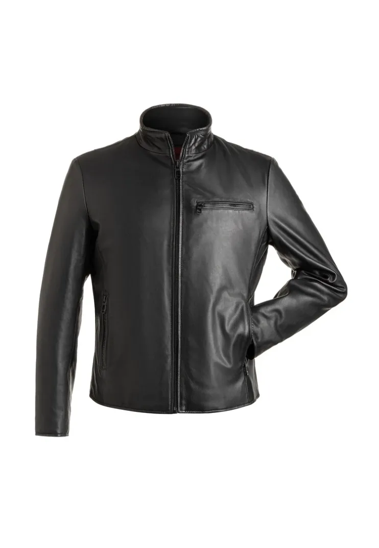 Crafted from calf leather, the modern biker jacket by LLOYD features a stand-up collar and light padding. Robust zippers, a chest pocket, and front zip pockets offer practical storage. Flexible back panels, an inner zip pocket, and two slip pockets complete the functional design of this high-quality jacket. The model is 1.87 metres tall and wears a size 50.n