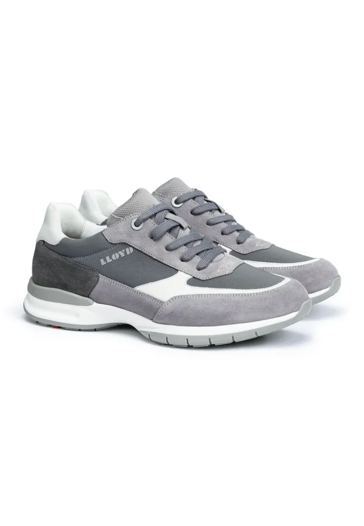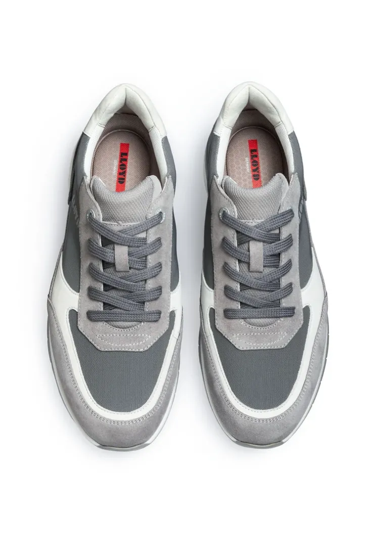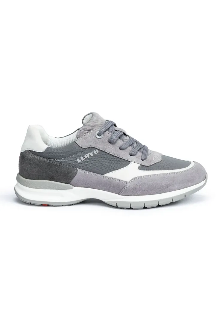 The LLOYD »KAPTUR« trainers crafted from grey rough leather feature an extra-wide fit for wider feet. In these trainers, a casual look is a given. Their wear-resistant rubber sole cushions the impact when walking perfectly. On top of that, the synthetic of the inner sole ensures lightness in wear. The laces as well as the soft rough leather upper guarantee a original and high-quality look and a firm, secure grip. These mesh-lined trainers are breathable and comfortable. The model has a Variofootbed which is ideally suited for the use of inlays thanks to the removable insole.