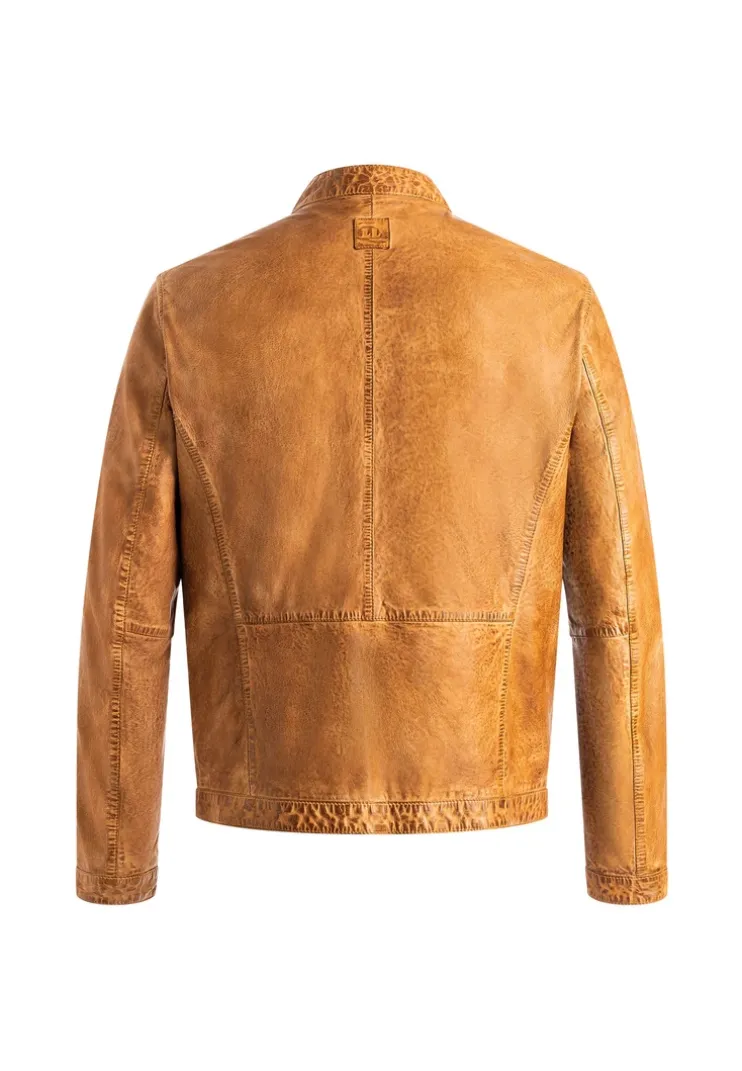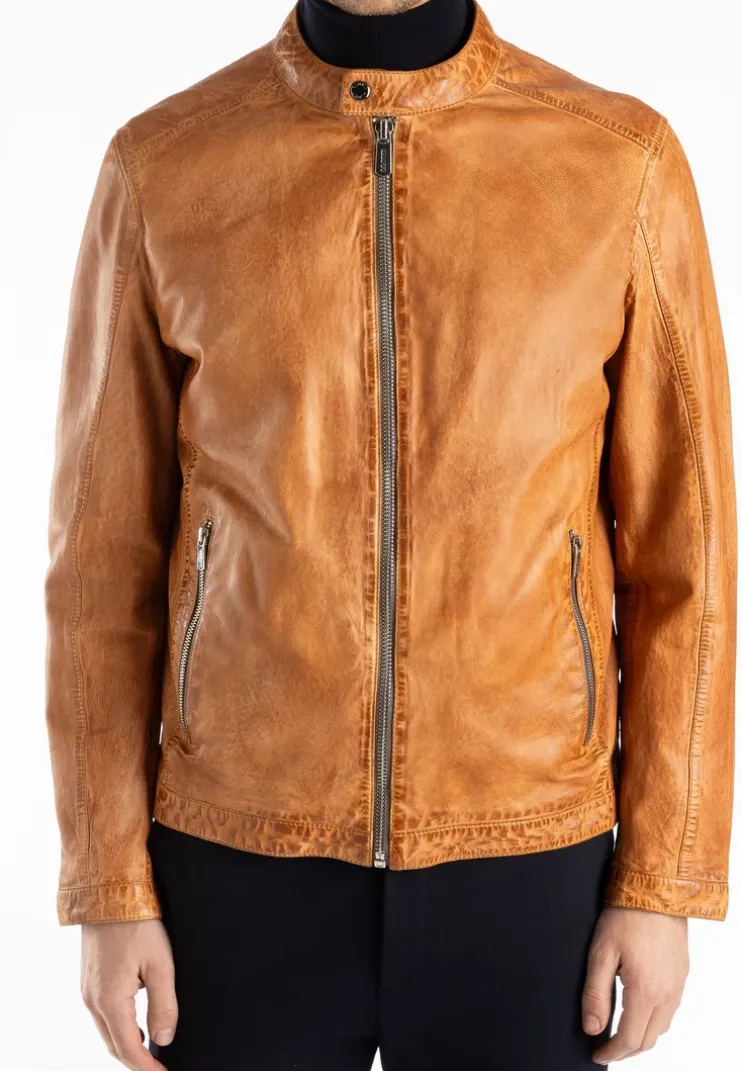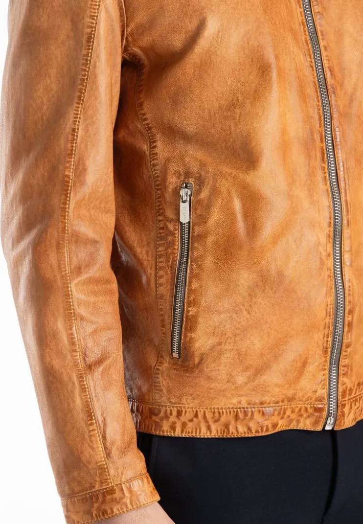 The “LAURENZO” jacket from LLOYD is a slightly tailored biker jacket made from lamb leather. It has a stand-up collar with a latch and press stud, side slit pockets with a zip and a zip pocket and two slit pockets on the inside. It is also lightly lined with a cotton blend.