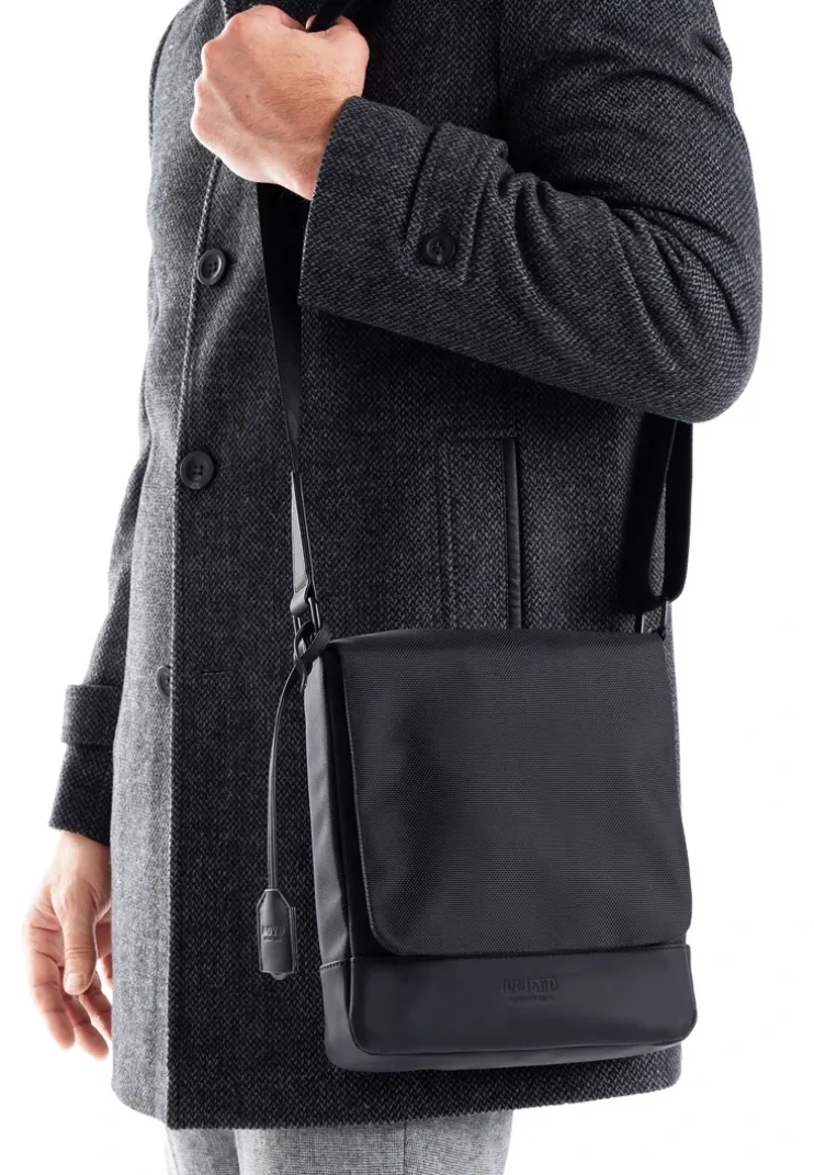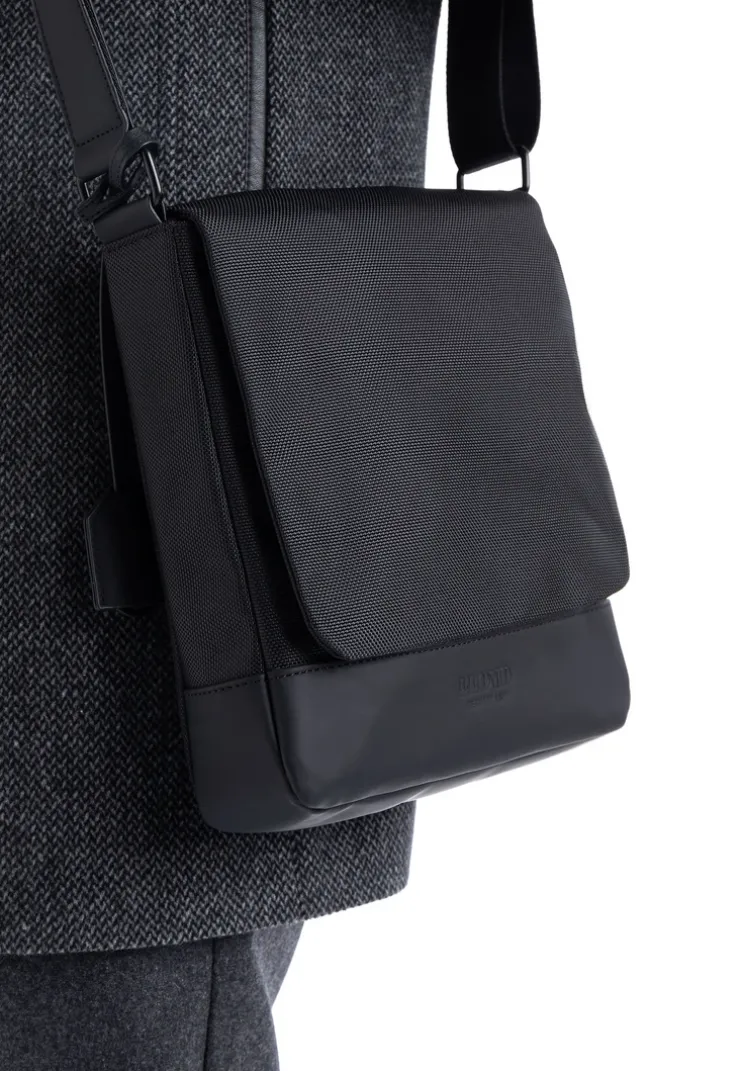 The small messenger bag from the brand LLOYD, made of durable nylon fabric, impresses with its longevity and modern design. The bottom of the bag is made from a special Rains material, providing extra protection and stability. Measuring 23 x 26 x 6 cm, it is compact yet spacious enough for your daily essentials.nThe adjustable shoulder strap ensures optimal comfort and flexibility. On the back, there is a vertical zippered pocket for quick access to important items. The front flap is securely closed by two invisible magnets, giving the bag an elegant appearance.nThe main compartment offers ample space and is equipped with a small zippered pocket, two pen holders, and a slip pocket to keep your belongings well organized. Additionally, a detachable keychain is included, adding to the bag’s practicality.