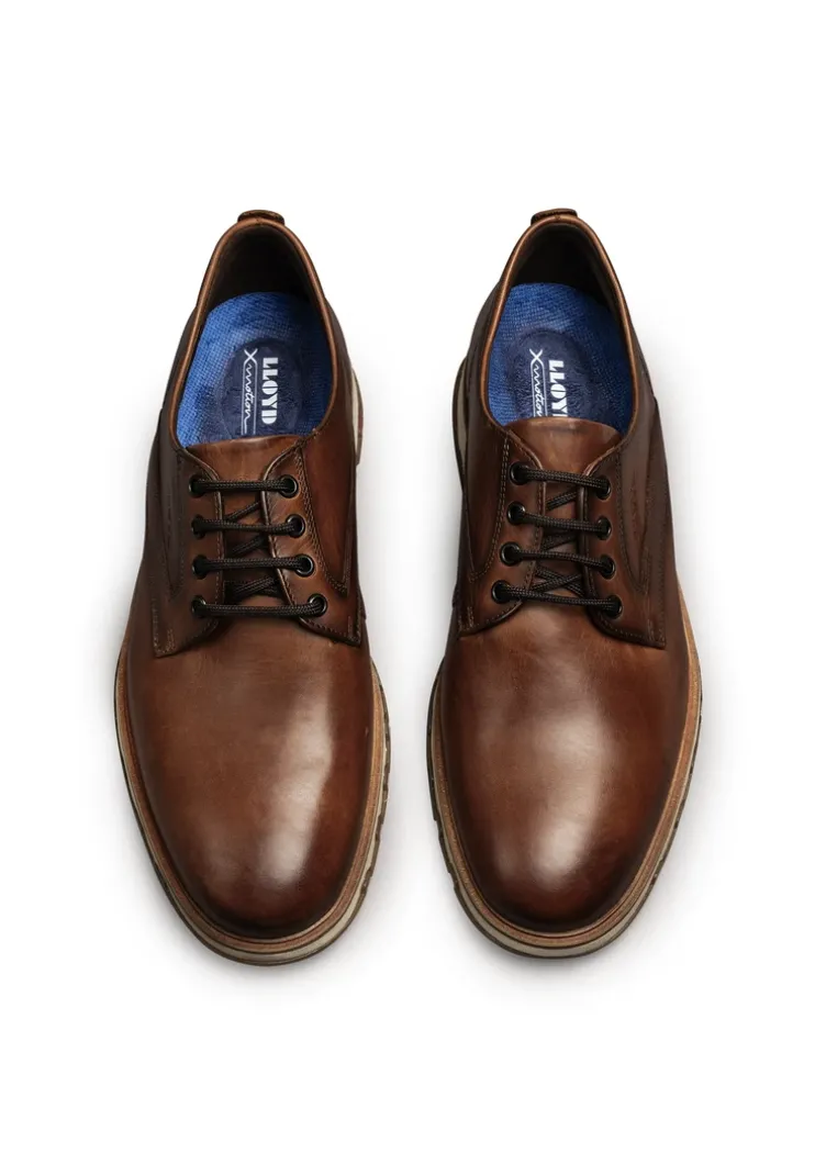 Make a statement with the LLOYD lace-up shoes made from brown smooth leather and a sporty design. The men’s lace-up shoes are perfect for a classic look combined with an elegant appearance. A wear-resistant rubber sole cushions the impact when walking. Thanks to the low block heel the shoes offer secure footing and allow comfortable everyday wear. The laces as well as the soft smooth leather upper guarantee a classic, elegant appearance and a firm, secure grip. These leather lined shoes are breathable and comfortable. The model has a Variofootbed so it is optimally suited for inlays thanks to the removable insole.