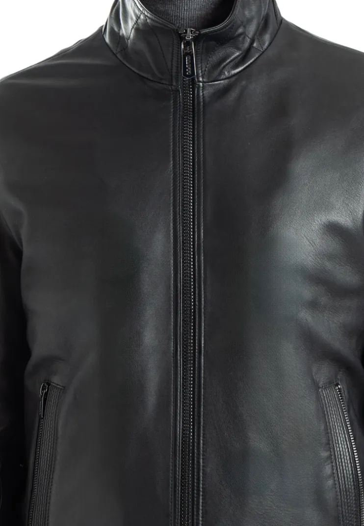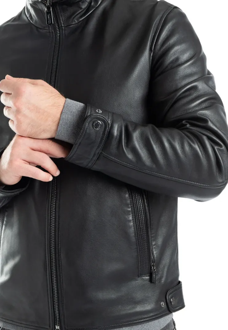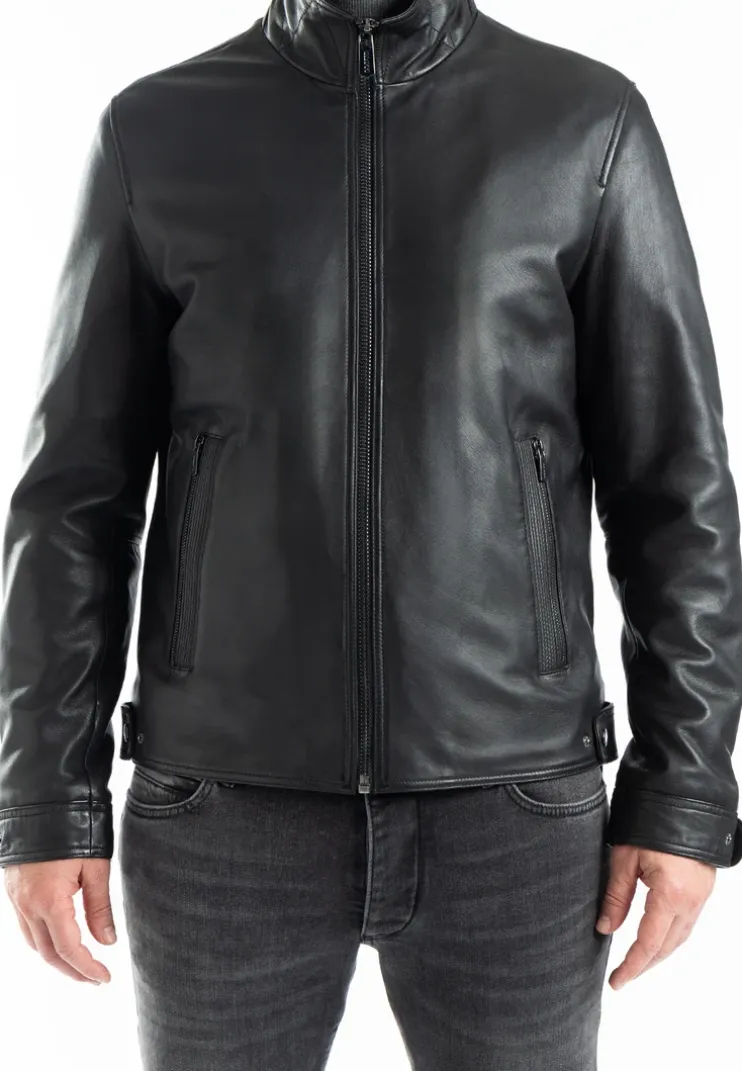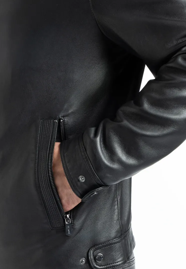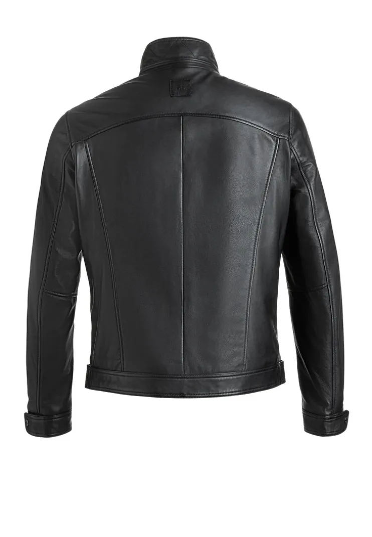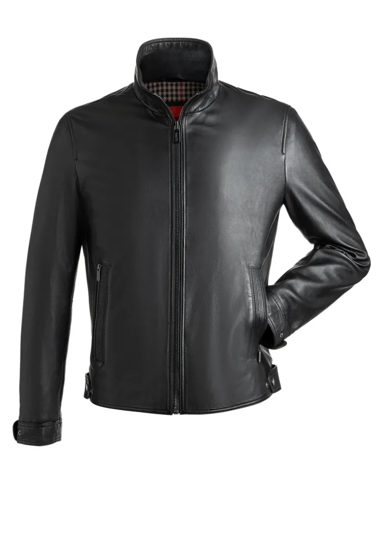 Crafted from fine lamb leather, the jacket by LLOYD features a modern biker look with a high collar. Robust zippers, side zip pockets, and adjustable sleeves and hem provide practicality. It includes an inner zip pocket, two open inner pockets, light padding, and a wool-blend lining, combining style with functionality. The model is 1.87 metres tall and wears a size 50.
