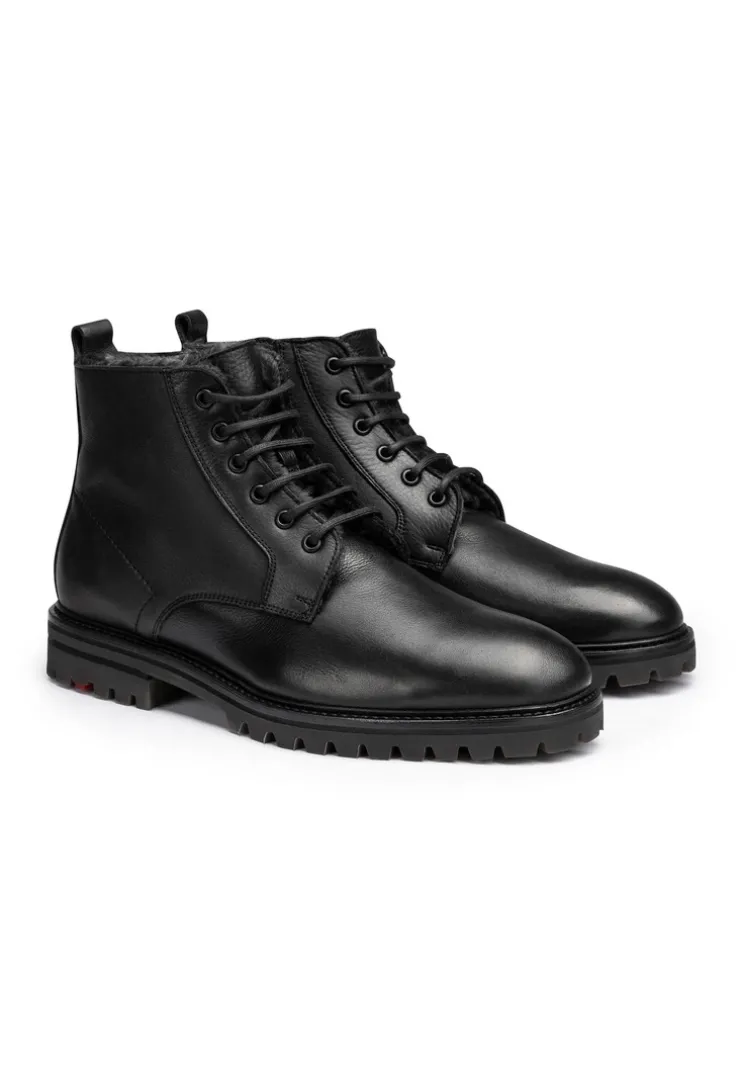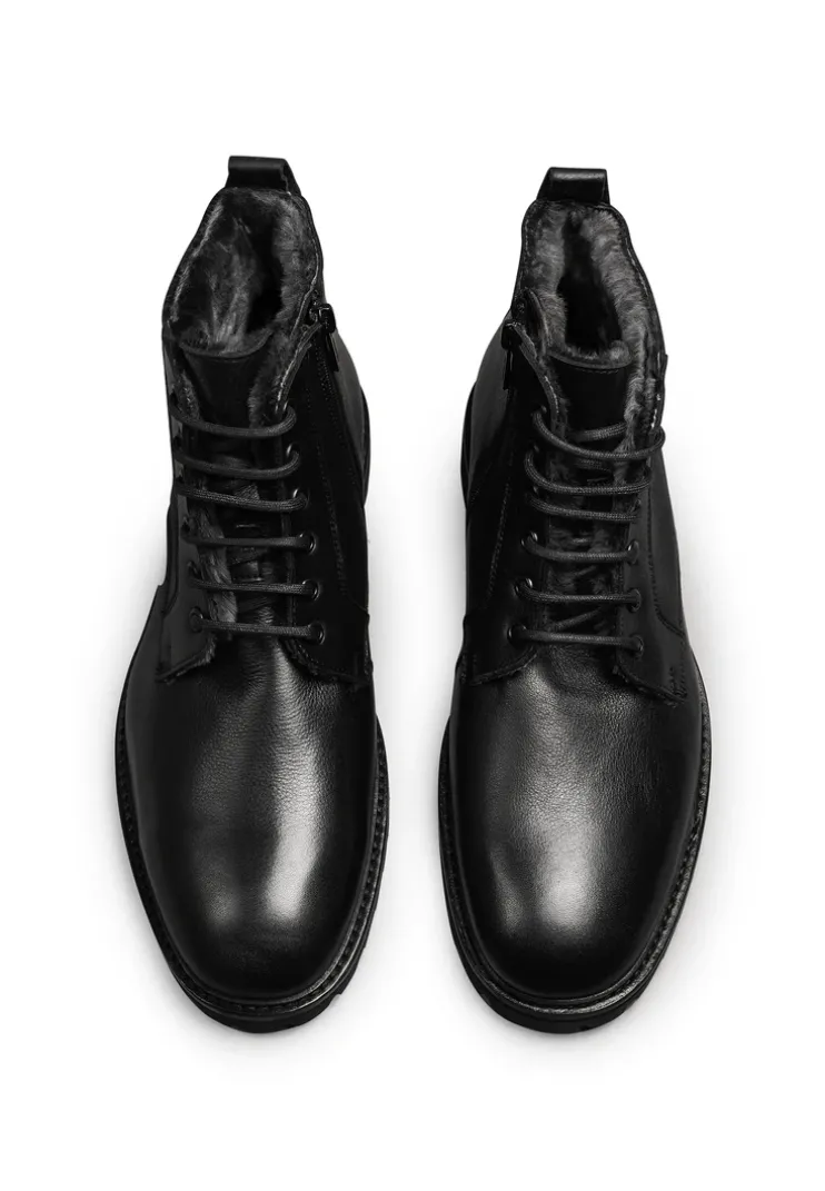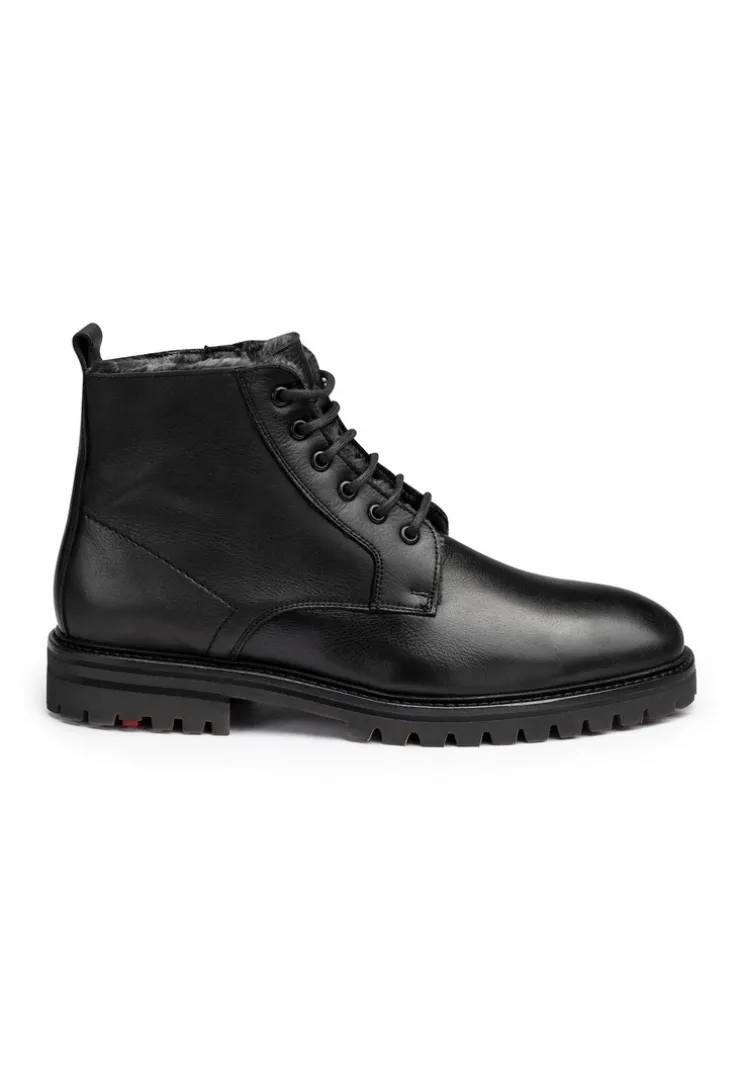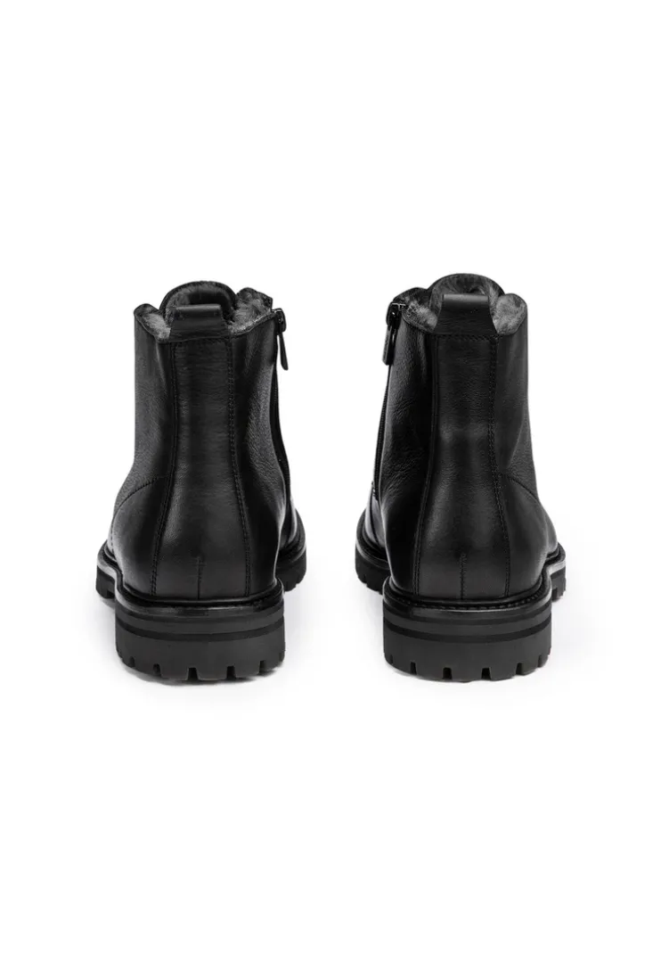 The LLOYD boots crafted from black leather feature a distinctive look. The shoes persuade with a variation of outfit combinations. The non-slip rubber sole cushions the impact when walking perfectly. On top of that, the lamb skin of the inner sole ensures a warm interior. With the low block heel the shoes offer secure footing and allow comfortable day-to-day wear. The zip fastening and the long-lasting grained leather upper ensure a very individual high-quality appearance and easy fastening. Thanks to the lambskin fur lining these shoes are warm, regulate the temperature and also snug during cold days.