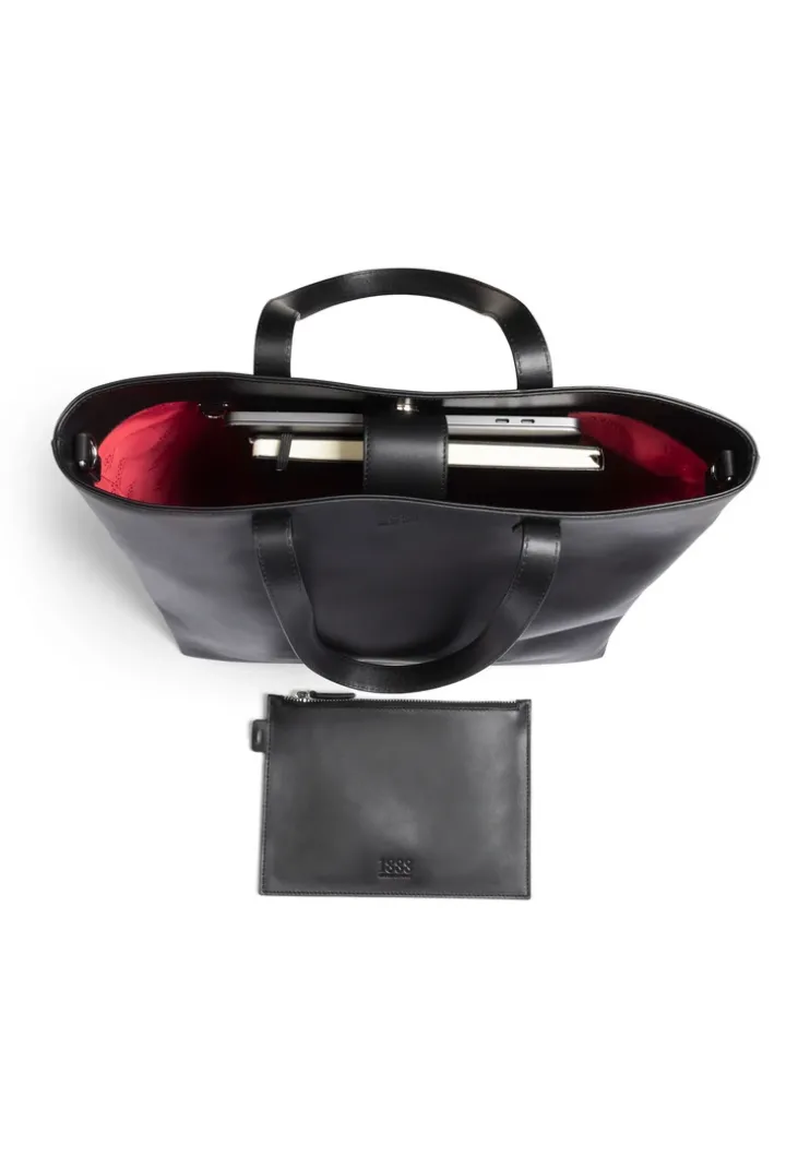 Discover the shopper bag from LLOYD, an elegant tote bag made from high-quality nappa leather with an adjustable, detachable shoulder strap and short carrying handles. The main compartment can be closed with a magnetic button fastener and there is a leather zip pocket, two slip pockets and a pen holder inside. The bag also has a detachable leather pouch that can be closed with a zip and a key ring pendant. Measuring 38 x 45 x 12 cm, this shopper bag is perfect for everyday use.