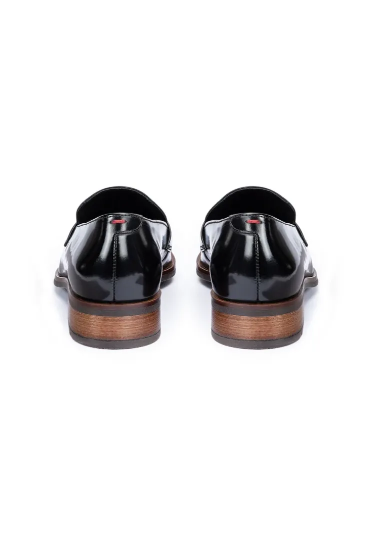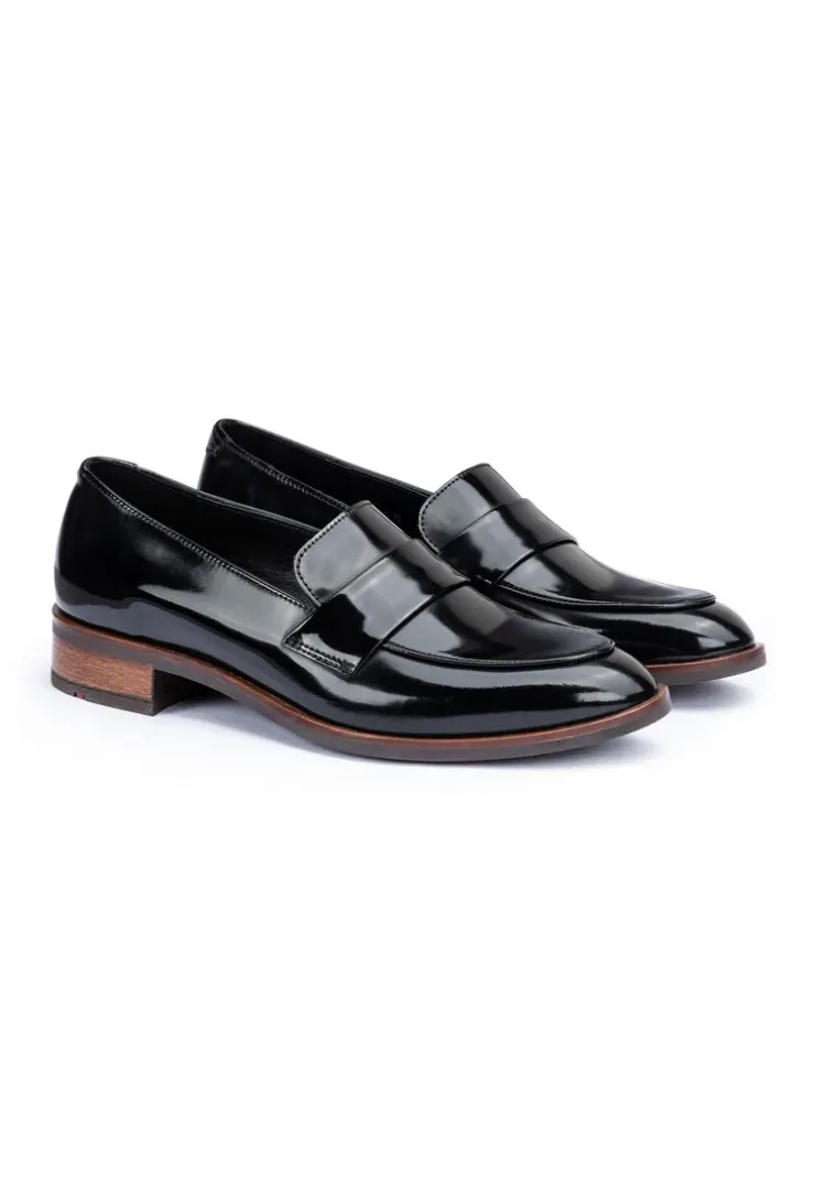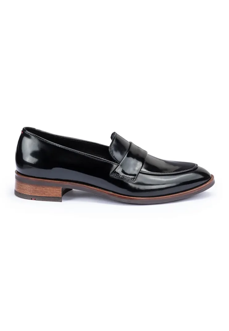 Stand out with the LLOYD slip-ons made from black glazed leather and an elegant finish. Easy handling by simply sliding into them is guaranteed in these shoes. The non-slip rubber sole cushions the impact when walking perfectly. Additionally, the leather of the inner sole ensures optimal heat regulation. The extravagant, pointed toe, gives the feet an on-trend shape. The shoes offer secure footing and allow comfortable everyday wear thanks to the low block heel. Easy putting on and taking off as well as an elegant look are guaranteed by the noble glazed leather upper and the elasticated band. These shoes are comfortable and breathable by use of the leather and textile lining.