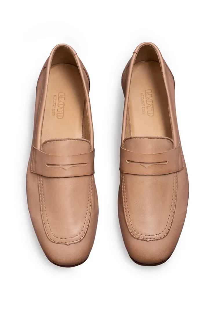 The LLOYD slip-ons designed with brown rough leather feature comfortable wear. The slip-ons are ideal for easy handling by simply slipping into them. A flexible leather and rubber sole cushions the impact when walking and guarantees comfortable long wear and the leather of the inner sole offers optimal heat regulation. Through the low block heel the shoes offer secure footing and allow comfortable daily wear. The women’s shoes’ soft rough leather upper and elasticated band guarantee a original and high-quality look and quick putting on and taking off. These leather and textile lined shoes are comfortable and breathable.