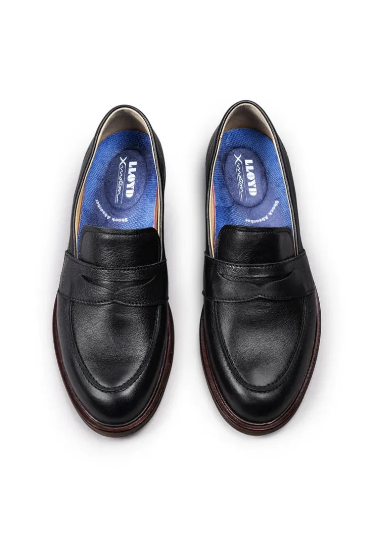 LLOYD presents the slip-ons: made with black glazed leather, the shoes boast a classy look. The shoes are perfect for effortless handling by simply sliding into them. A non-slip rubber sole cushions the impact when walking. Through the low block heel the shoes offer secure footing and allow comfortable daily wear. The elasticated band as well as the noble glazed leather upper guarantee an elegant look and easy putting on and taking off. These shoes are breathable and comfortable by use of the leather lining. The model features a Variofootbed which means it is ideally suited for the use of inlays thanks to the removable insole.