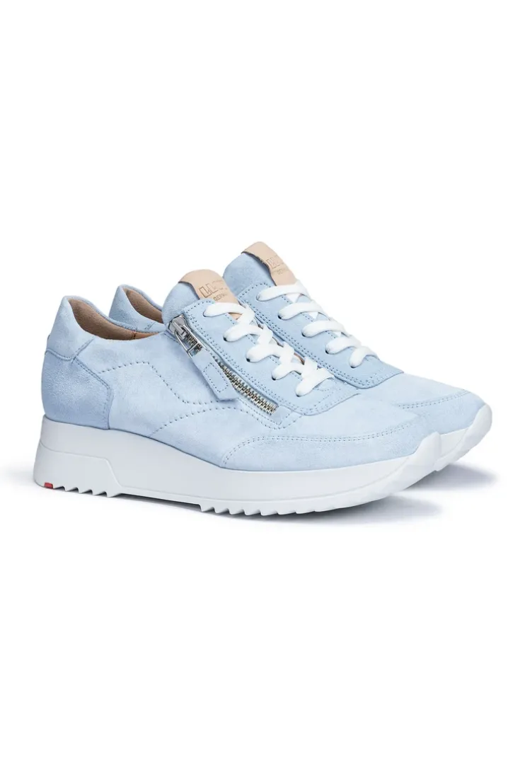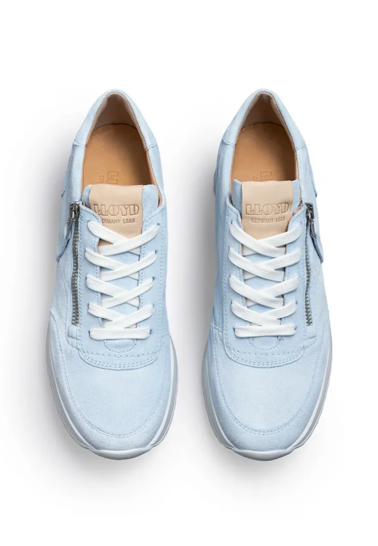 The LLOYD low-top trainers designed with blue rough leather feature a remarkably light sole. The lace-up shoes are ideal for a sporty look for everyday life. Their non-slip rubber sole cushions the impact when walking perfectly. On top of that, the leather of the inner sole ensures good heat regulation. The lace-up shoes’ soft rough leather upper, zip fastening guarantee a original and high-quality look and quick fastening. These leather and textile lined shoes are comfortable and breathable. With the Extralight® sole, the model is particularly lightweight and flexible along with non-slip and shock-absorbent.