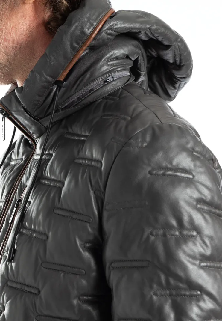 The quilted jacket from LLOYD in sheepskin combines luxurious material with modern functionality.nWith a detachable hood that can be individually adjusted using a drawstring, it offers maximum comfort in changing weather conditions. The high collar provides additional protection from the wind and cold. The jacket is equipped with sustainable DUPONT SORONA® AURA insulation, which impresses with its lightness and optimum thermal insulation. This quilted jacket from LLOYD is the ideal choice for a stylish look in cold weather without compromising on comfort and functionality. The model is 1.87 m tall and wears a size 50.