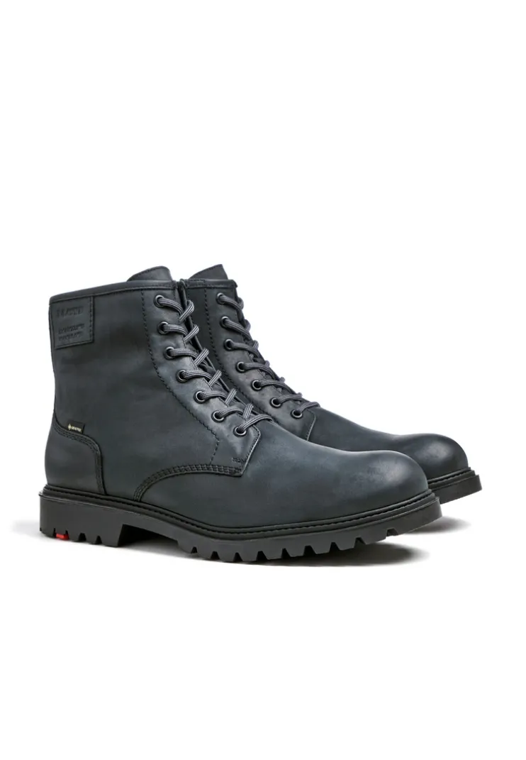 Stand out with the LLOYD lace-up ankle boots »VANNY« made from black smooth leather and an all around waterproof and extremely breathable GORE-TEX membrane suited for any weather. In these men’s shoes, a variety of outfit combinations is a given. A wear-resistant rubber sole is utilized. This cushions the impact when walking. The men’s shoes’ soft smooth leather upper, zip fastening guarantee a classic, elegant appearance and easy and quick fastening. Even when it’s cold these men’s shoes are insulated and warm as well as snug by use of the wool lining. With the Variofootbed, the model is ideally suited for the use of inlays due to the removable insole.