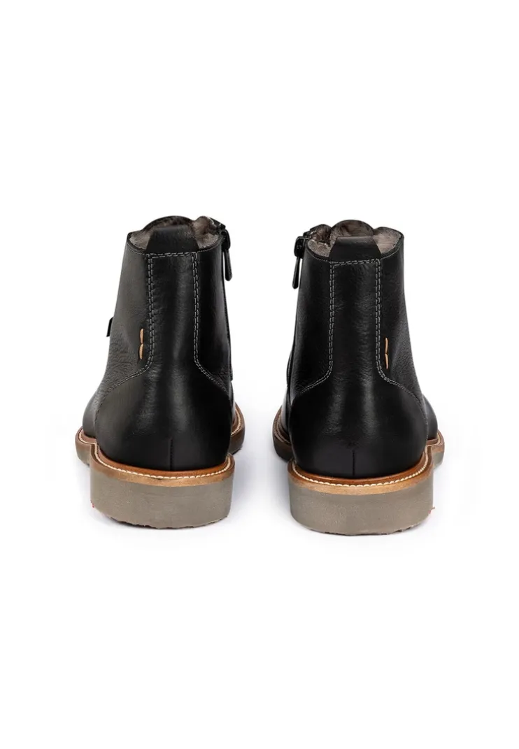 The LLOYD boot made of black leather impresses with its permanently waterproof and breathable GORE-TEX membrane, whatever the weather. Thanks to the lacing, the lace-up shoes promise a secure fit. The abrasion-resistant rubber sole provides ideal cushioning when walking, while the lambskin insole offers a warm interior. Thanks to the flat block heel, the boot offers a secure foothold for everyday wear. The zipper and the hard-wearing, grained leather ensure a very individual, high-quality look and easy closure. Even on colder days, the lace-up boots keep you warm and are also temperature-regulating thanks to the lambskin lining.
