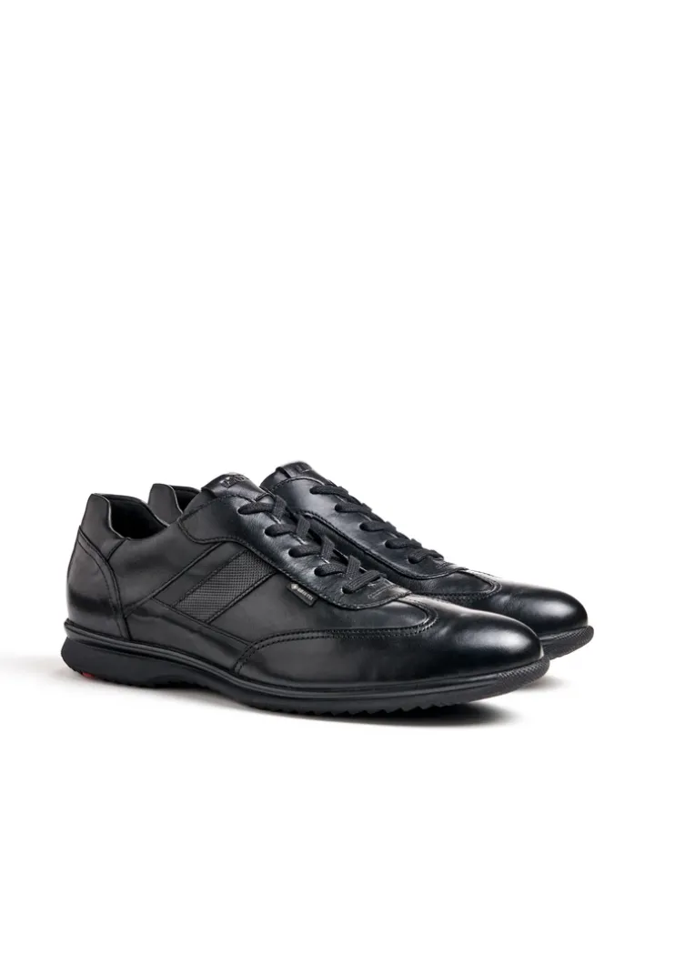 The leather combination leather with its solid texture is especially robust. The LLOYD low-top trainers designed with smooth leather feature an all around waterproof and extremely breathable GORE-TEX membrane suited for any weather. A sporty look for everyday life is guaranteed in these shoes. A wear-resistant rubber sole is used. This cushions the impact when walking while the synthetic lining of the inner sole offers lightness in wear. The laces and the soft smooth leather upper ensure comfort and a perfect fit. The model has a Variofootbed which means it is optimally suited for inlays due to the removable insole.