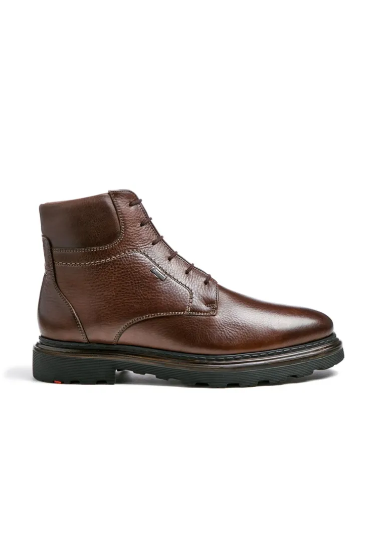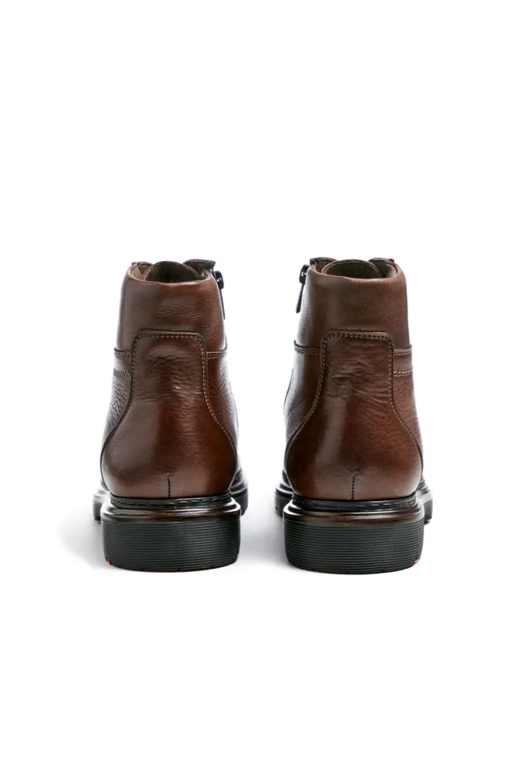 The LLOYD »VINE« lace-up ankle boots designed with brown leather feature a strong and shock-absorbent sole. A variation of outfit combinations is guaranteed in these men’s shoes. A flexible rubber sole is used. This cushions the impact when walking. The lace-up shoes’ long-lasting grained leather upper, zip fastening guarantee a very individual high-quality look and easy fastening. Thanks to the wool lining these shoes are insulated and warm and also snug during cold days. With this Extralight® sole, the model is particularly lightweight and flexible as well as non-slip and shock-absorbent.