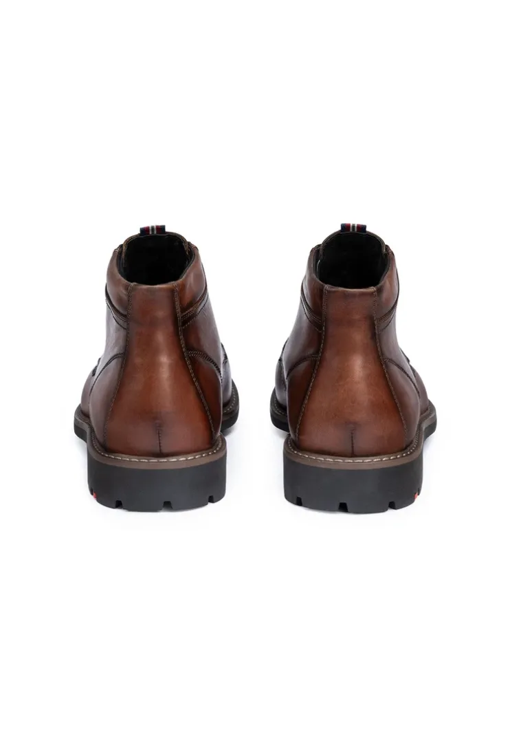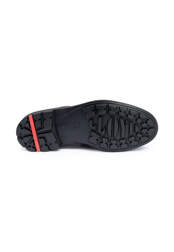 LLOYD presents the »VISCO« lace-up ankle boots: crafted from brown smooth leather, the shoes boast an all around waterproof and extremely breathable GORE-TEX membrane suited for any weather. The lace-up shoes are ideal for a variety of outfit combinations. A flexible rubber sole is utilized. This cushions the impact when walking while the wool lining of the inner sole ensures a warm interior. The laces and the soft smooth leather upper guarantee a classic, elegant look and a firm, secure grip. These wool lined men’s shoes are insulated and warm and also snug during cold days. With the GORE-TEX technology, the model is temperated comfortably guaranteeing a healthy foot climate.